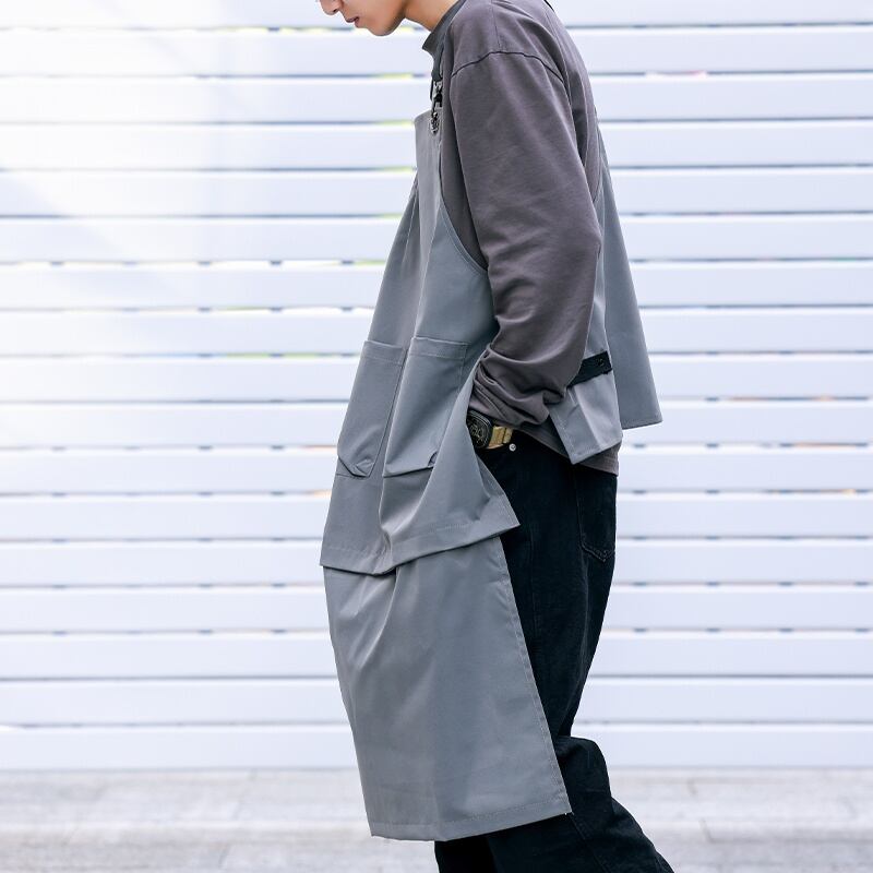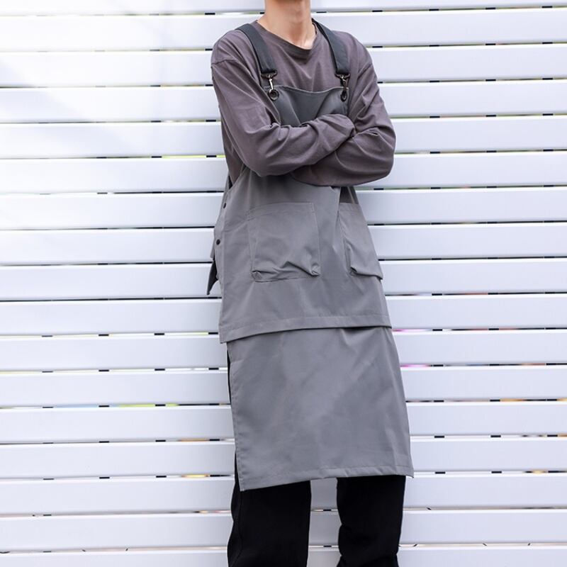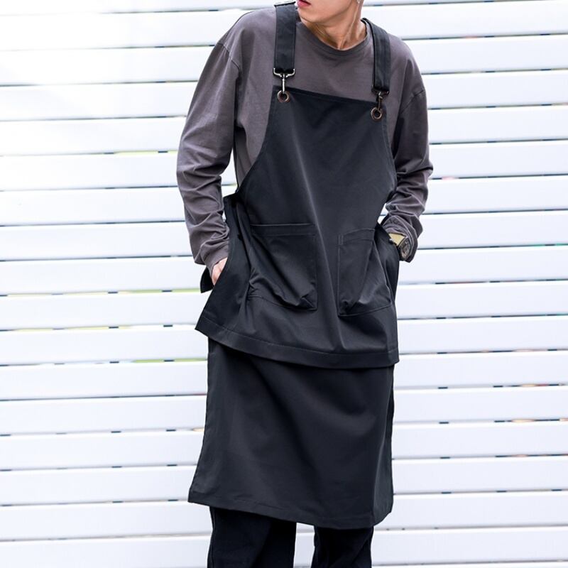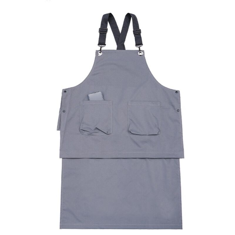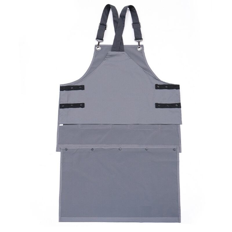 サスペンダーはサイズ調節可能で、エプロンはボタンでサイズを変更できます。