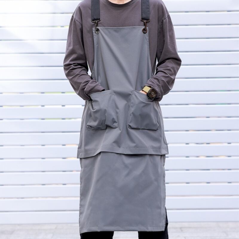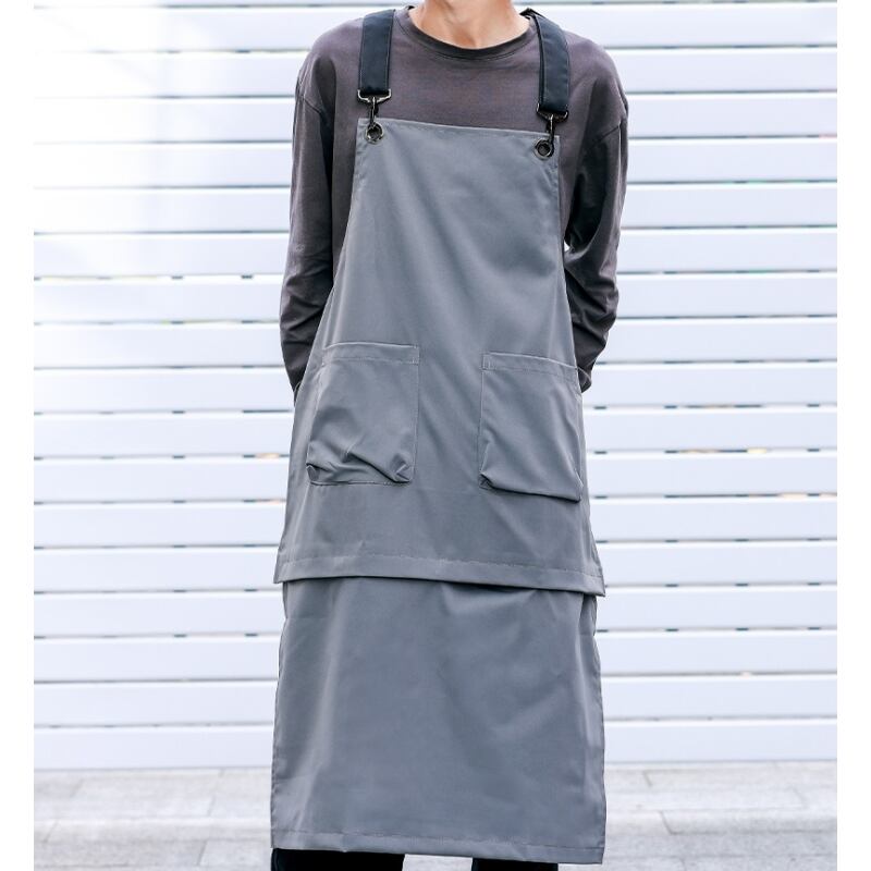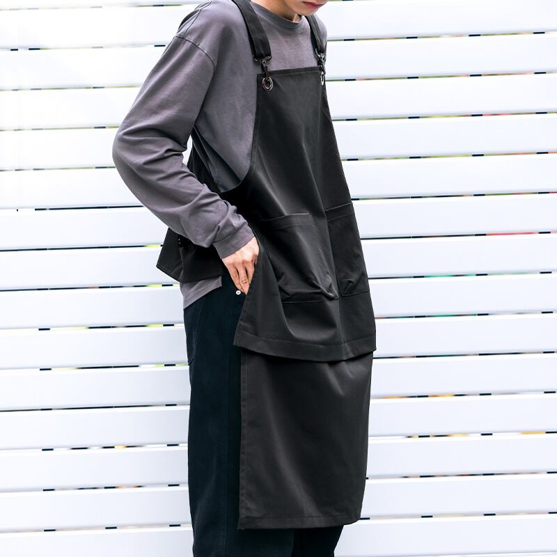 切り離し可能な2way仕様のロング丈エプロンです。