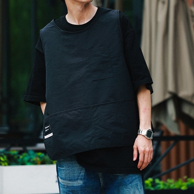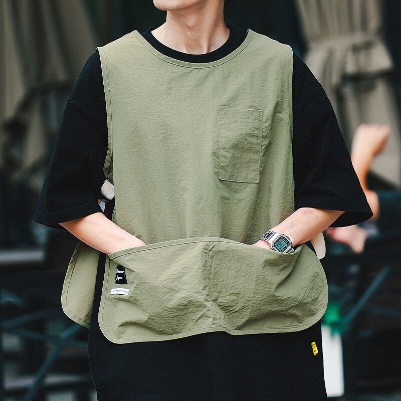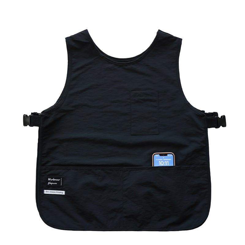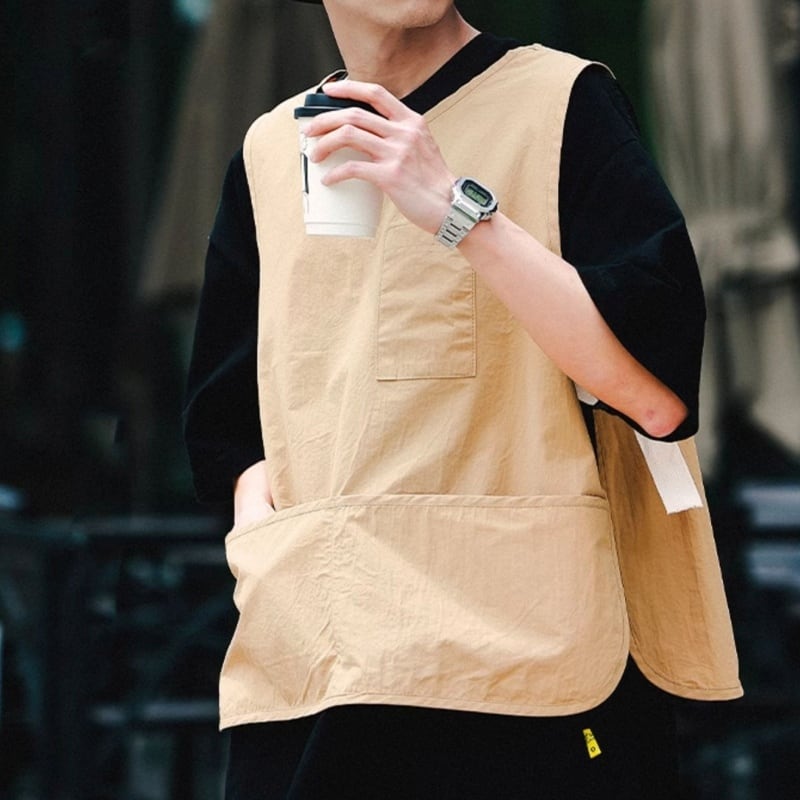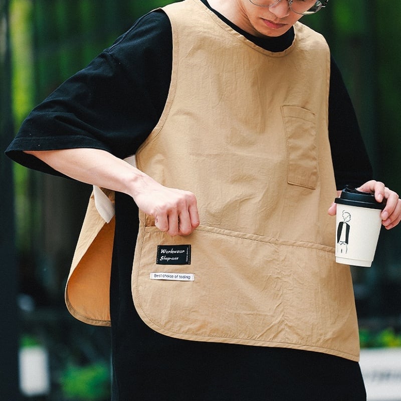 ユニセックスデザインでファッショナブルな、ベスト風ショートエプロンです。
