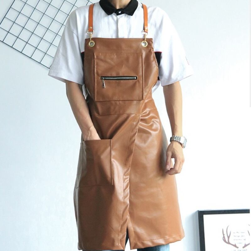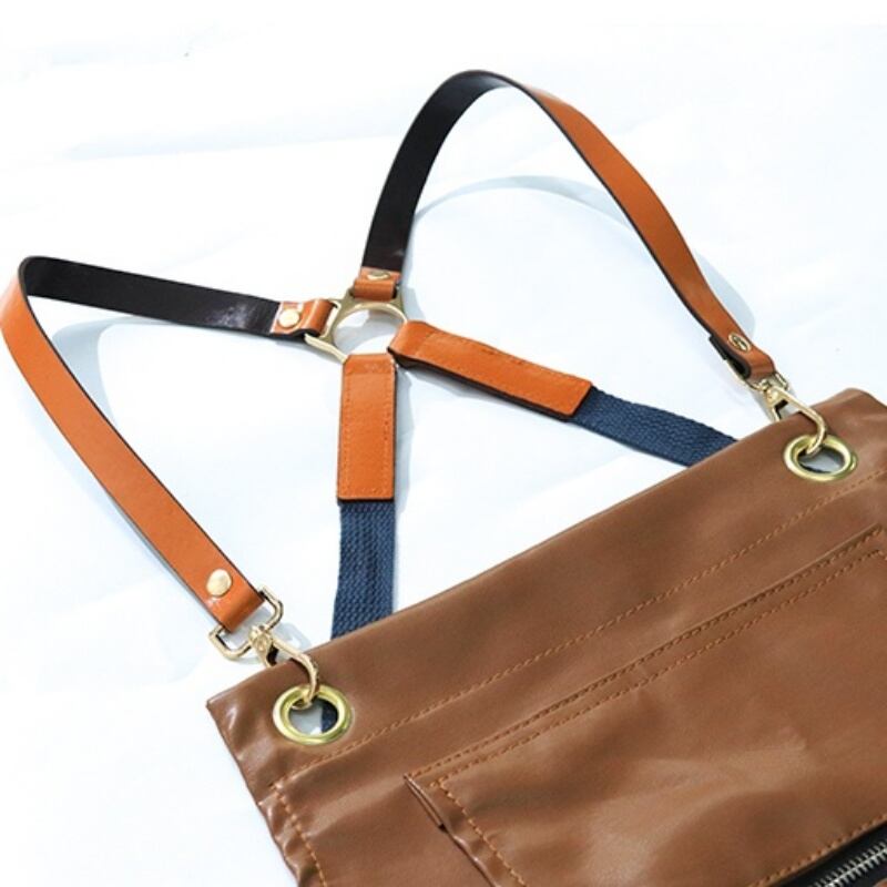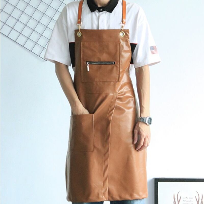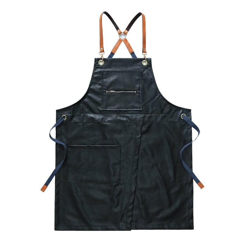 スタイリッシュなデザインと実用性を兼ね備えたロング丈のレザーエプロンです。