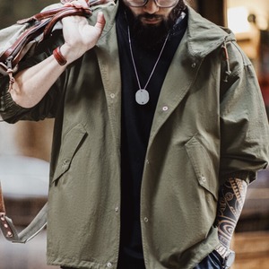 ミリタリーテイストを取り入れた、フード付きライトアウター。オーバーサイズデザインが、こなれた雰囲気を演出します。カジュアルなスタイルに合わせやすく、幅広いコーディネートを楽しめます。着回し力も抜群で、ワードローブに欠かせないアイテムになるでしょう。