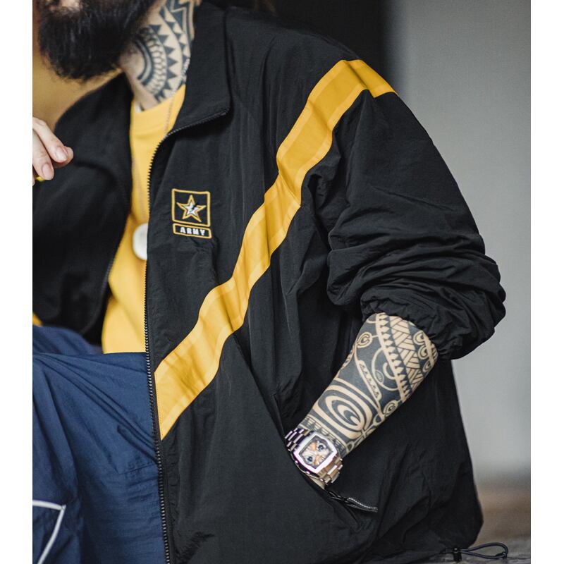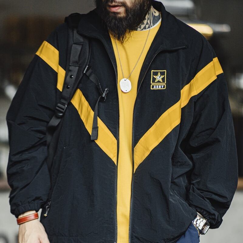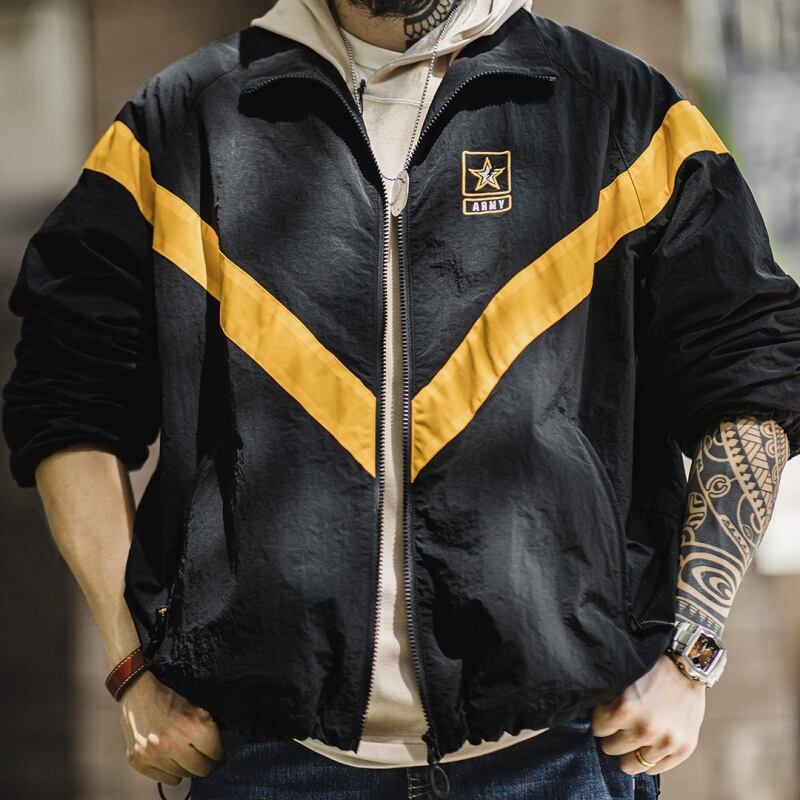 コントラストカラーのルーズスタンドカラージャケットA18577