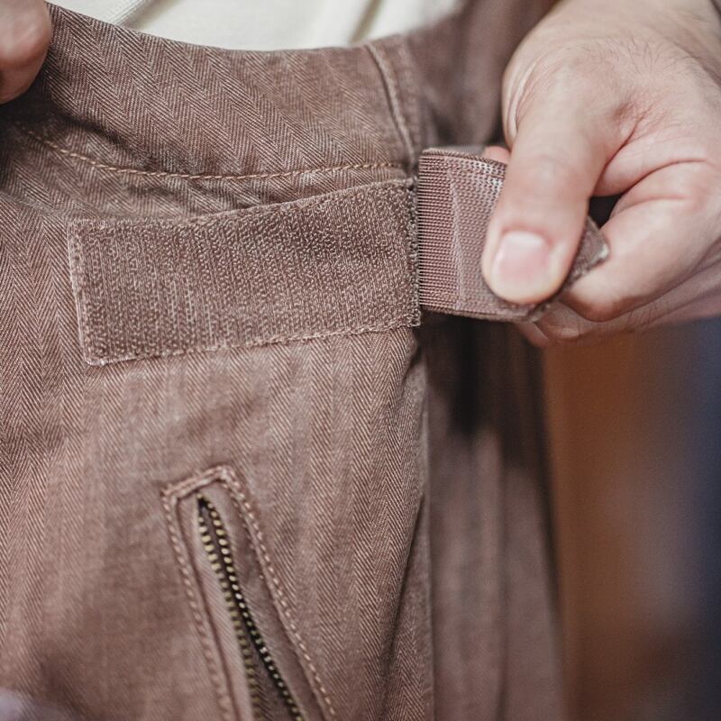 ウエストループのベルクロストラップで、伸縮性のある上半身を体型に合わせて調整できます。