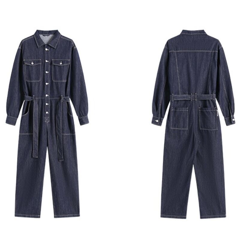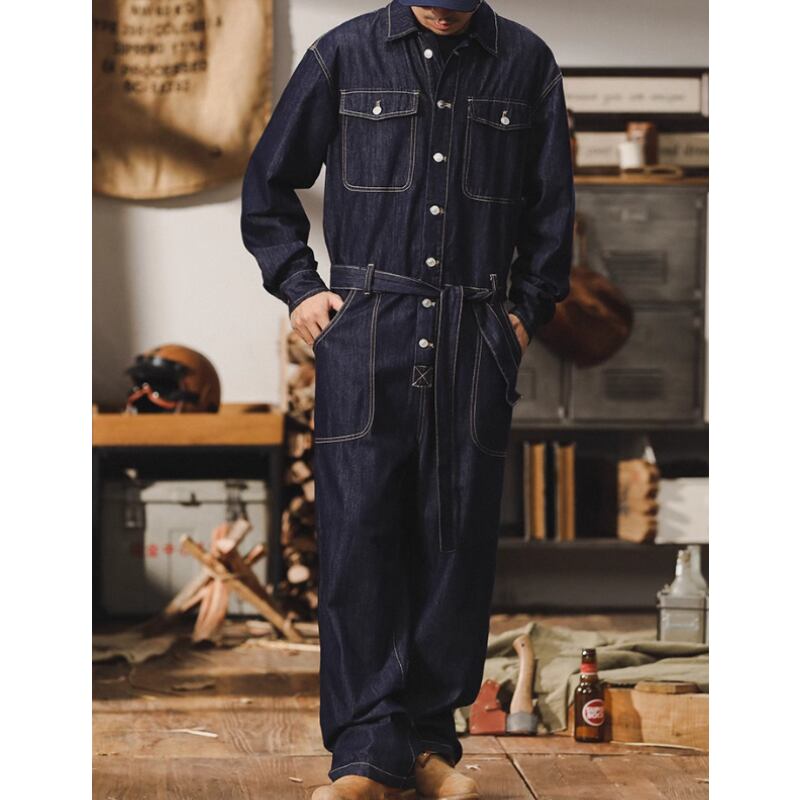 ゆったりとしたシルエットが魅力のデニムオーバーオールです。