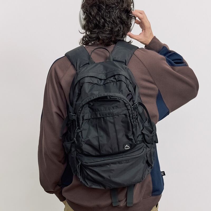外ポケットも大きく入れやすく、ボトルポケットにはフラップが付いているので、小物も安全に収納できます。