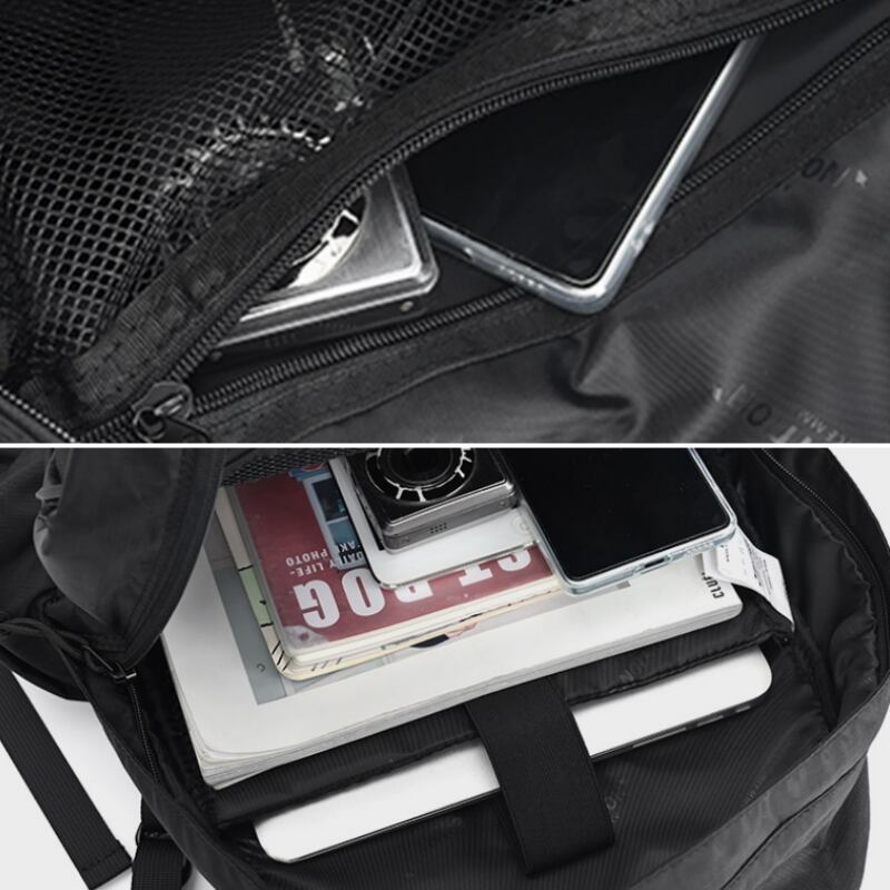 メインコンパートメントには15インチまでのラップトップが収納でき、メッシュポケットには小物を整理できます。