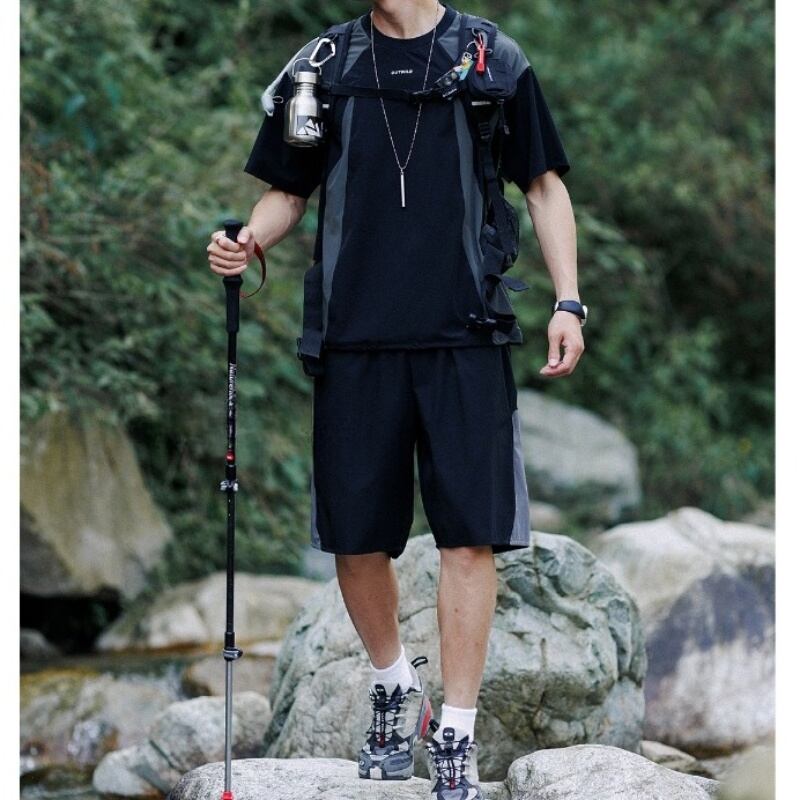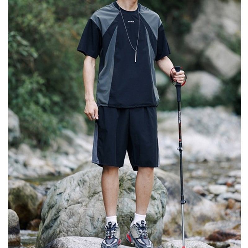 コントラストカラーステッチ五分袖速乾Tシャツ A18658