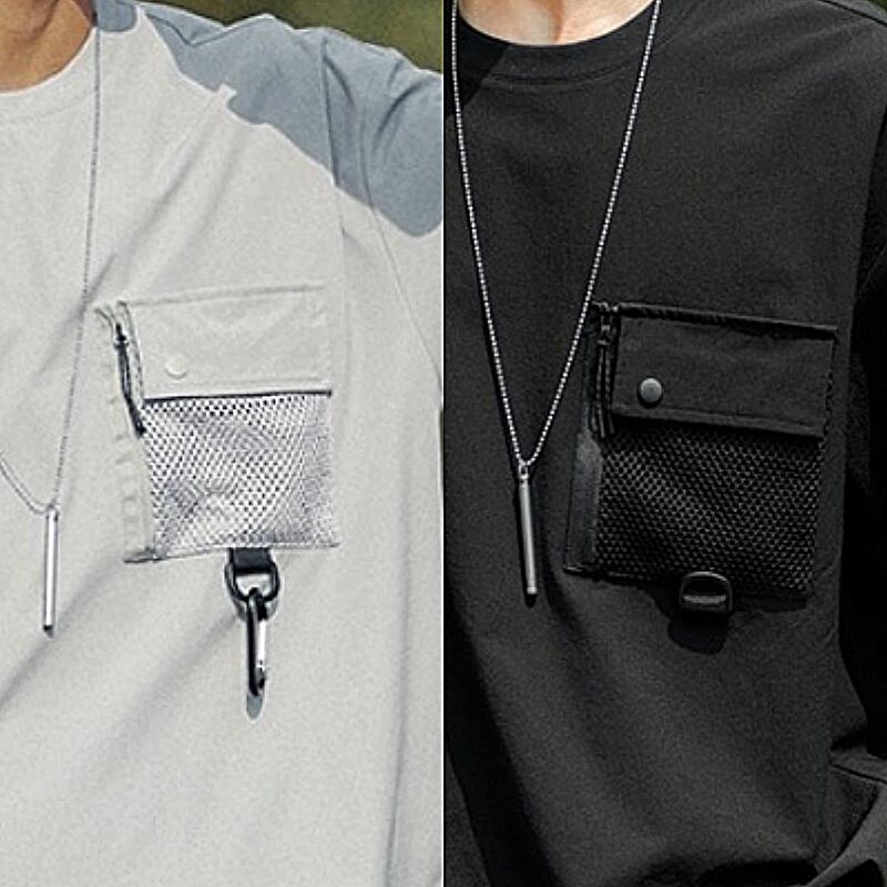 フラップとリングが付いたメッシュポケットは、アクティブな動きを妨げず、小物の収納に便利。