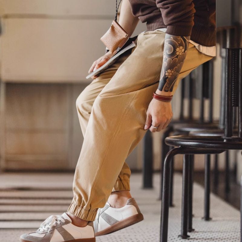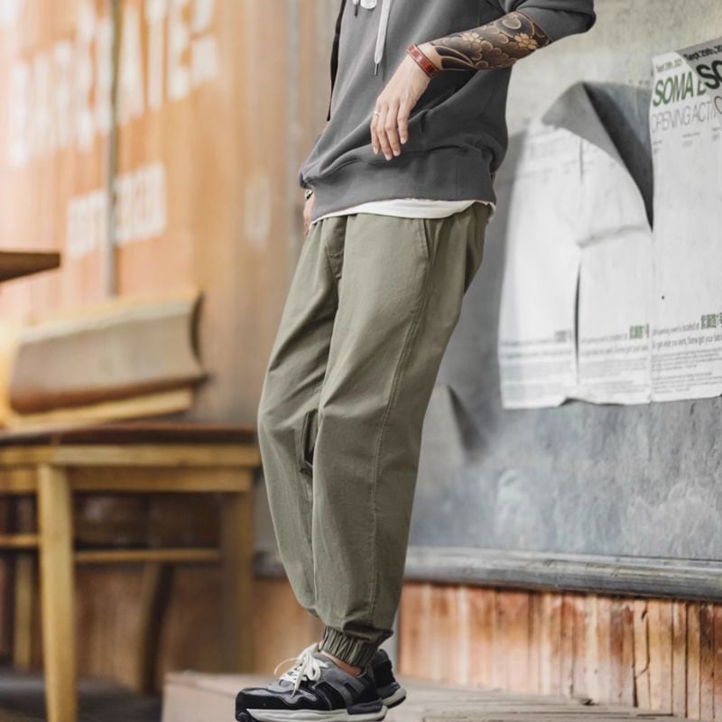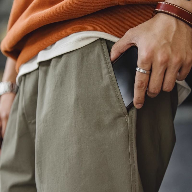 着心地抜群のイージーパンツ。ドローコードとゴムウエストで、締め付け感のない快適な履き心地です。
