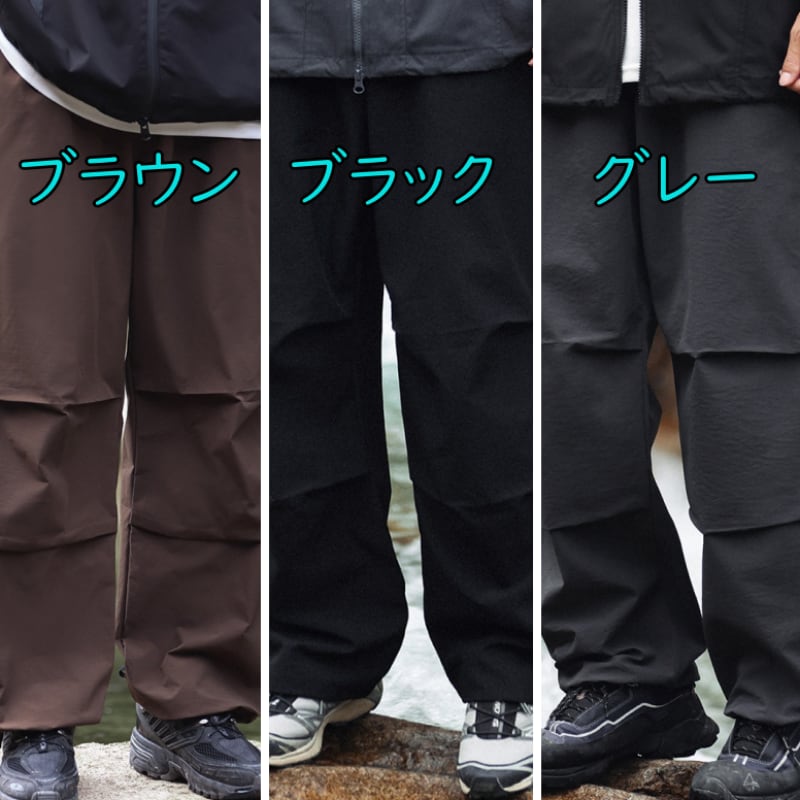 軽量で乾きやすいワイドフィットのパラシュートパンツ A18665