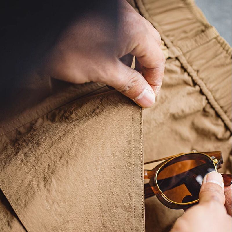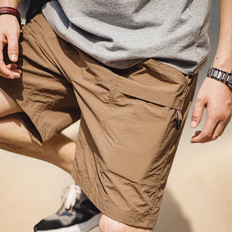 様々なポケットが配置された実用的なハーフパンツ。