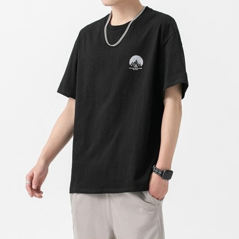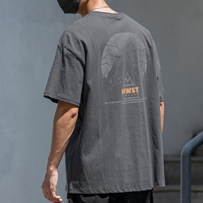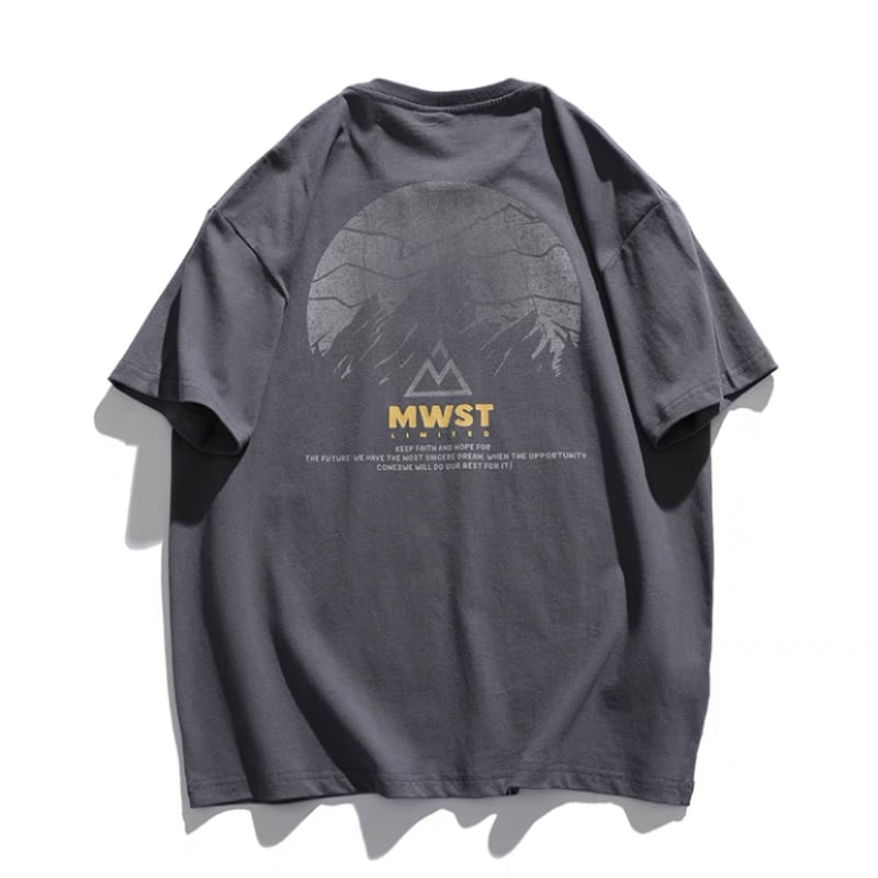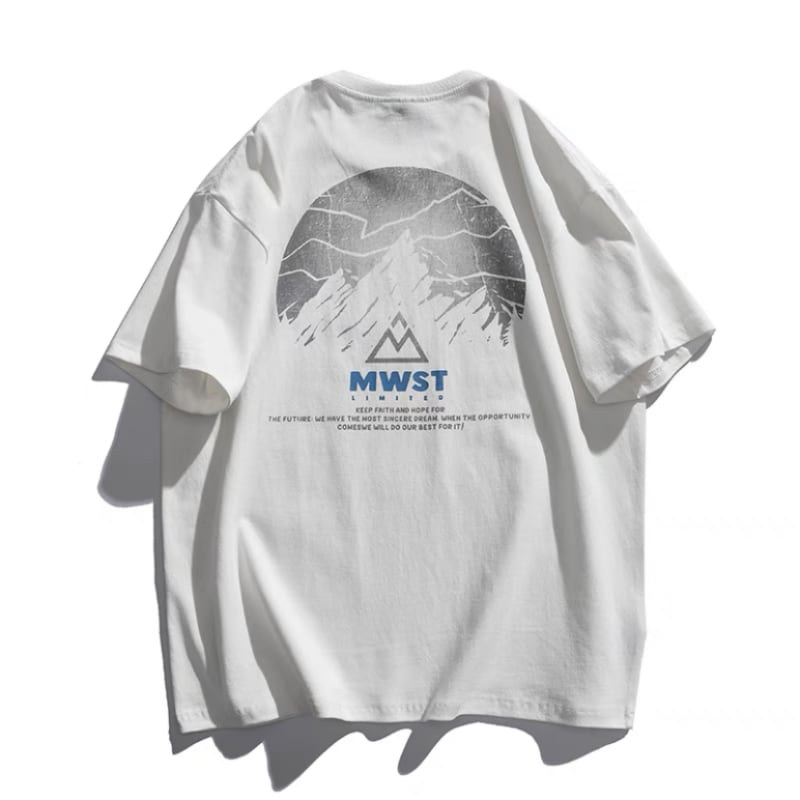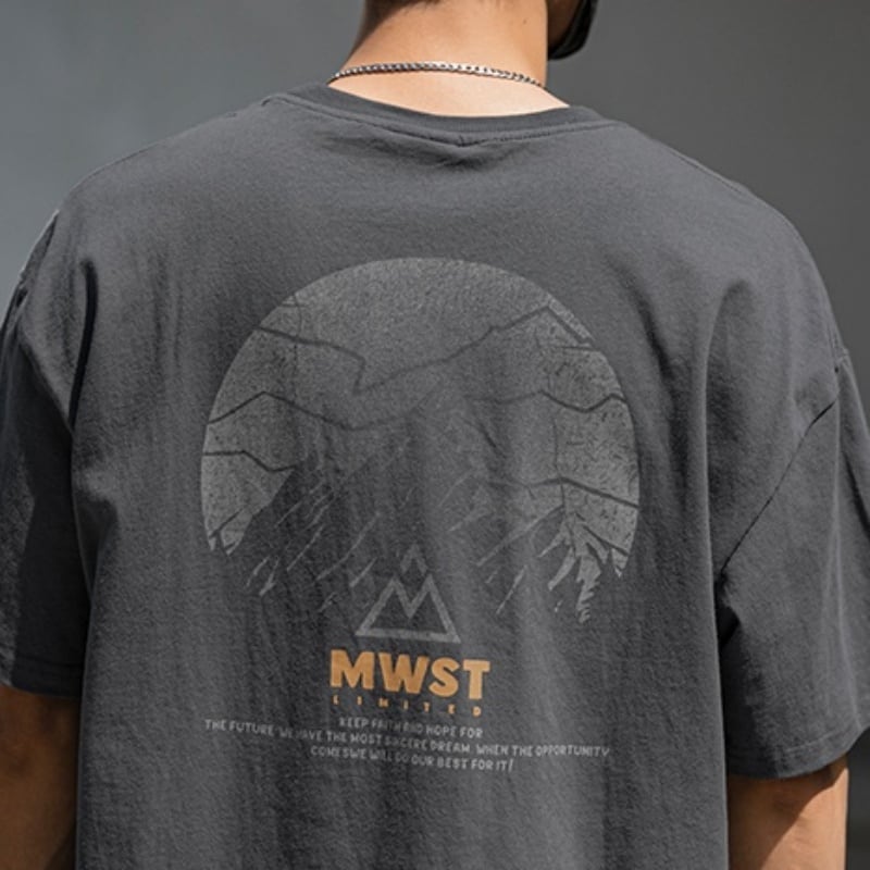 マウンテンのバックプリントがデザインされた半袖Tシャツです。