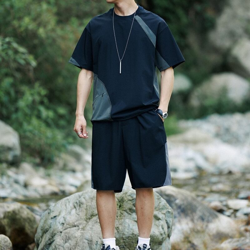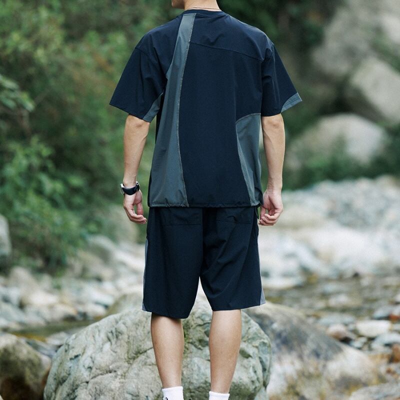通気性の良い5分袖コントラストカラーTシャツ A18697