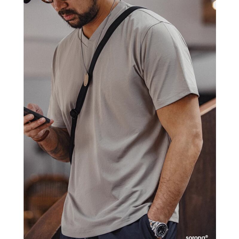速乾力と涼感が魅力のVネック半袖Tシャツです。
