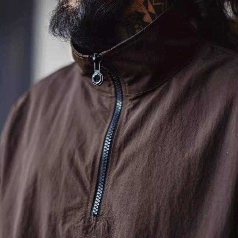 ハーフジップとスタンドカラーで幅広いシーンに対応できます。