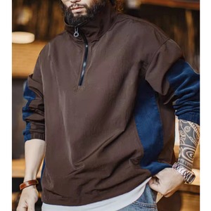 異素材ミックスのハーフジップスタンドカラープルオーバーです。