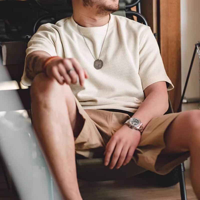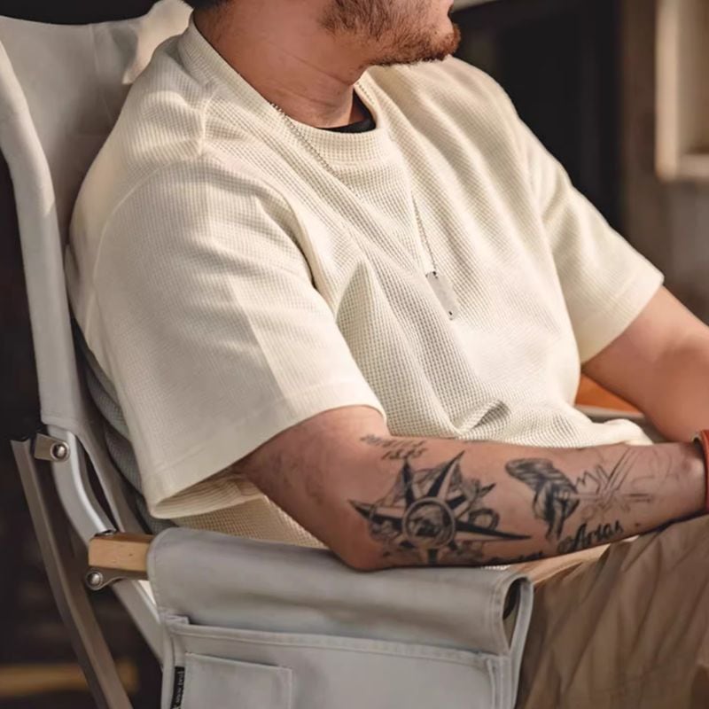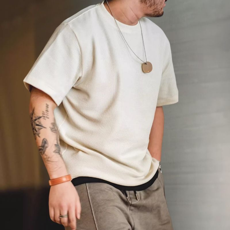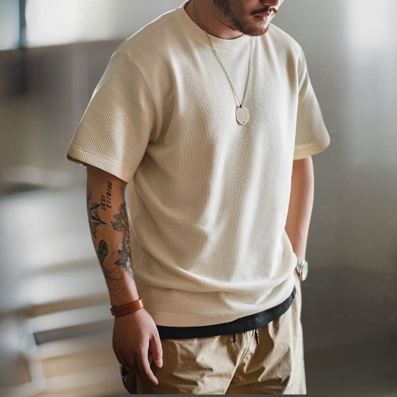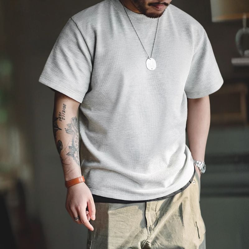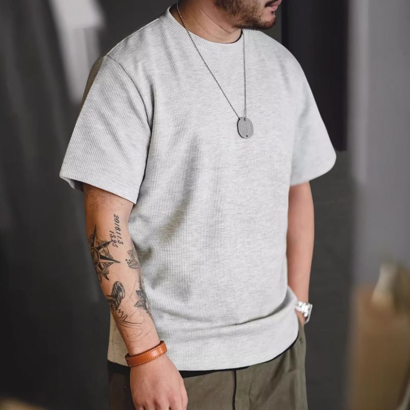 半袖クルーネックワッフル生地Tシャツ 3XLまで対応 A18773