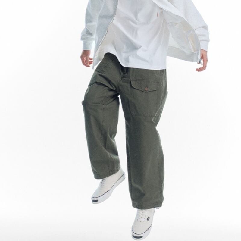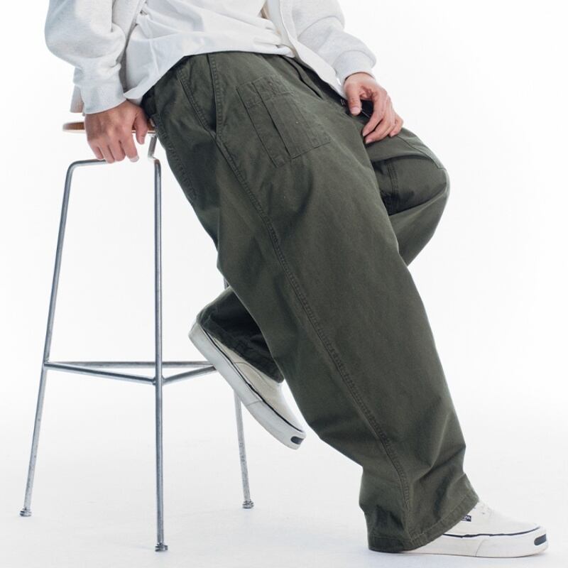 ウエストゴムでサッと履け、ゆったりとしたカットがスタイリッシュに決まるクールな一枚です。
