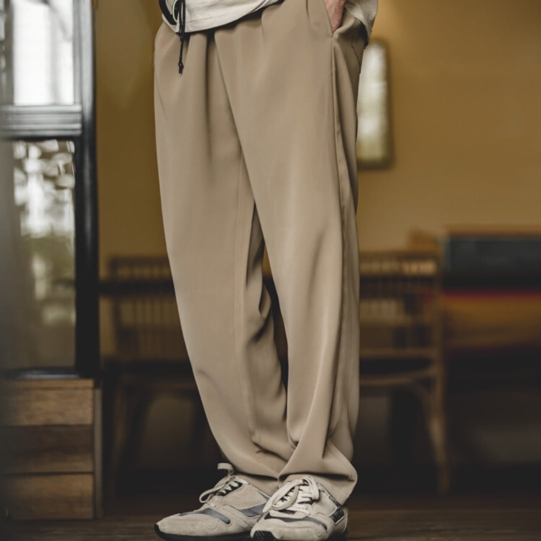 ノータックデザインで脚のラインを美しく魅せ、カジュアルにもフォーマルにも着こなせる汎用性の高さが特徴です。