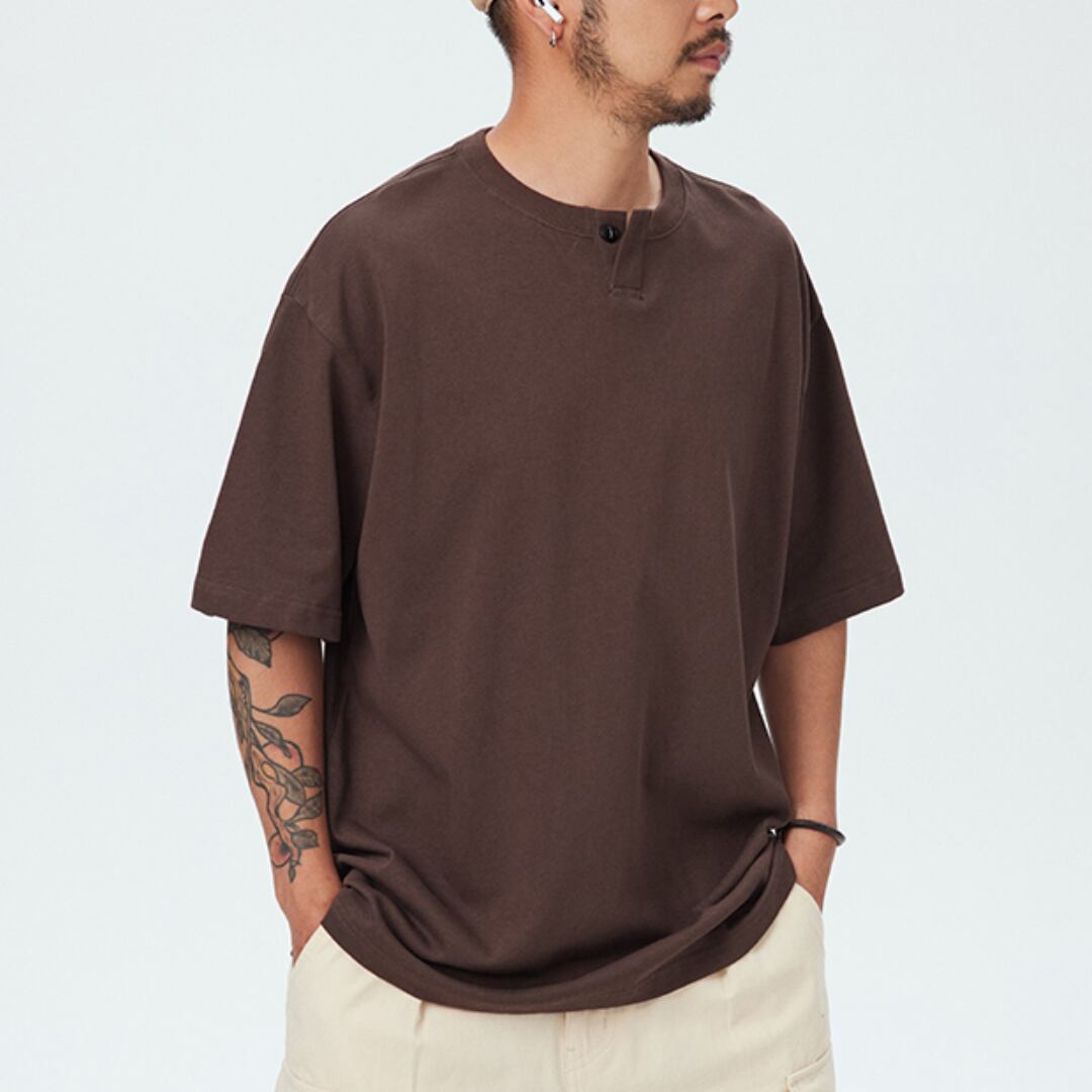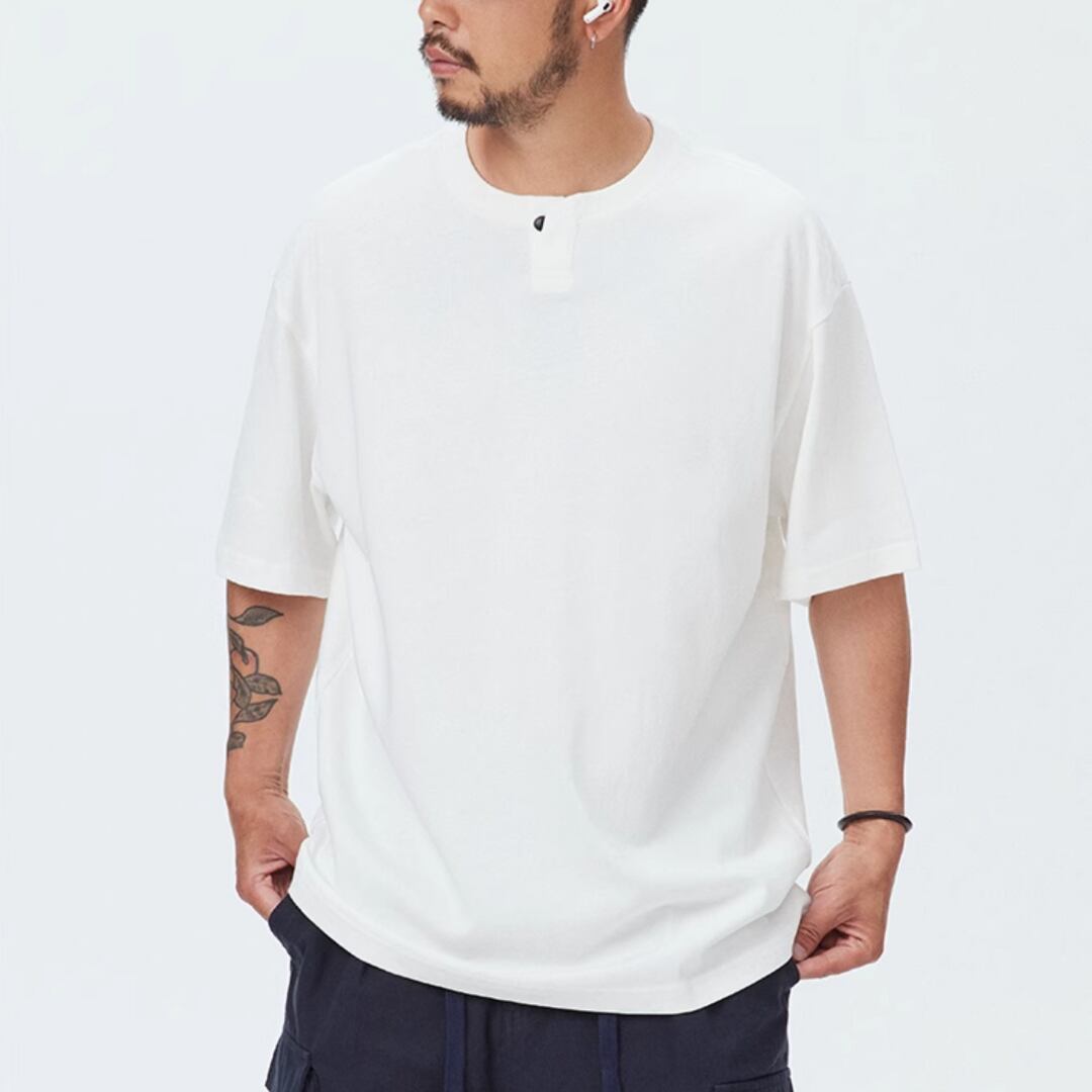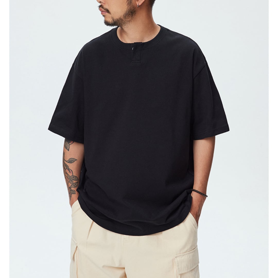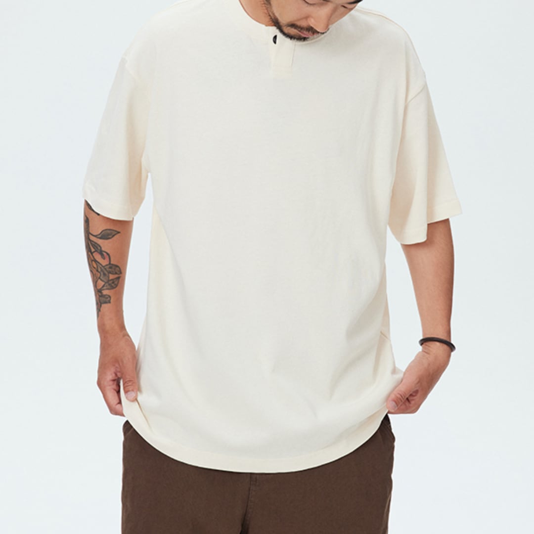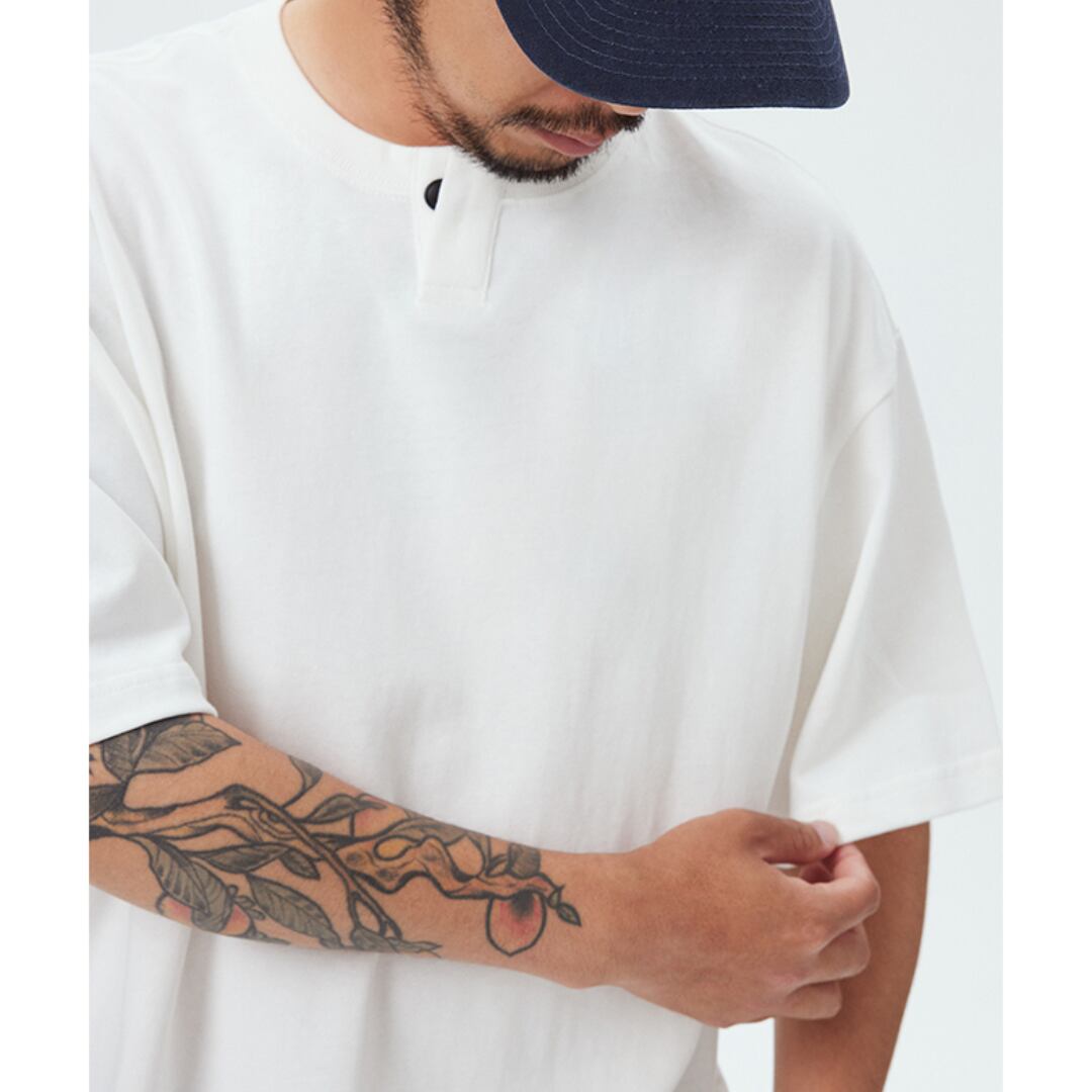 快適な着心地のヘンリーネック。ゆったりとしたボックスシルエットのTシャツは、どんなスタイルにも合わせやすく、デイリーユースに最適です。