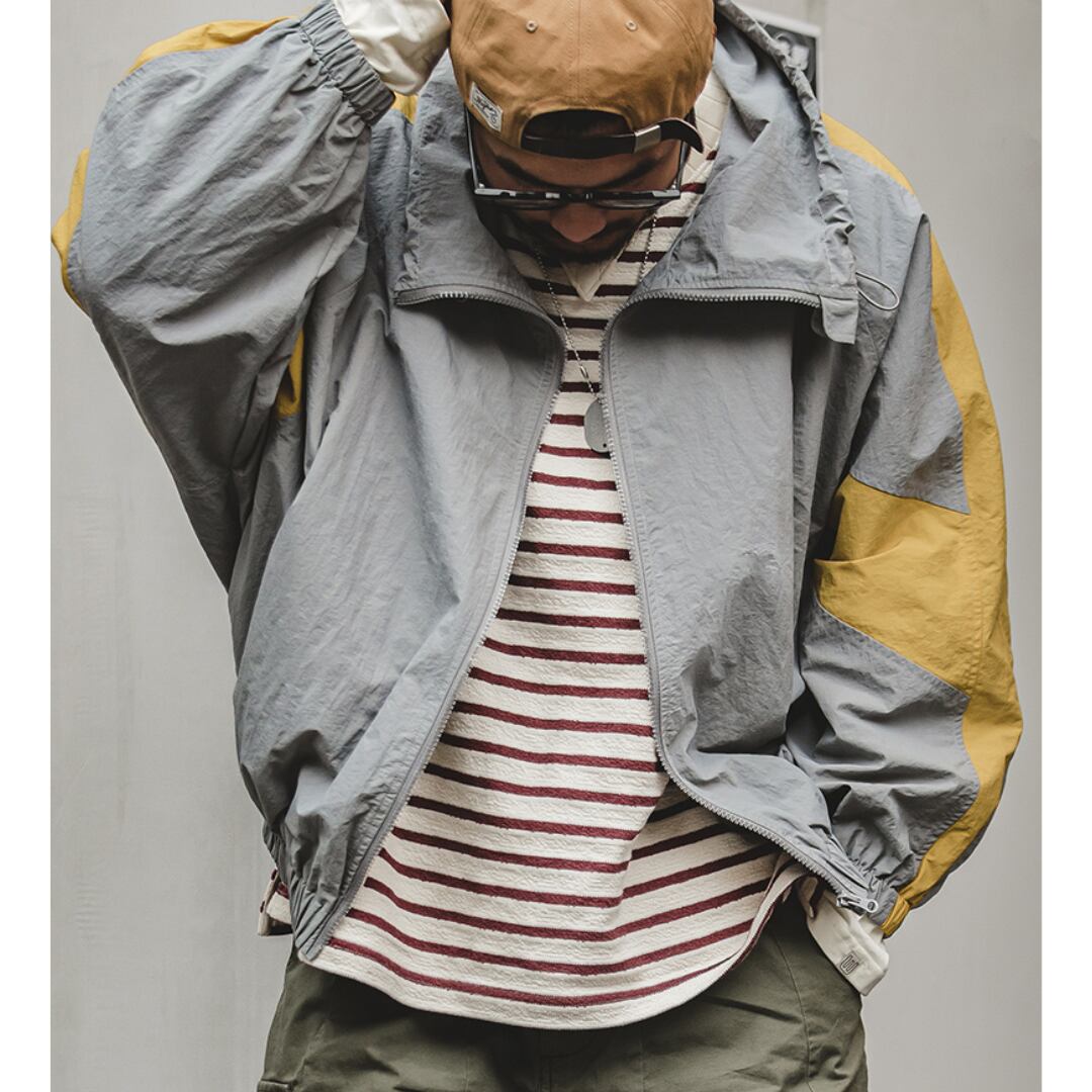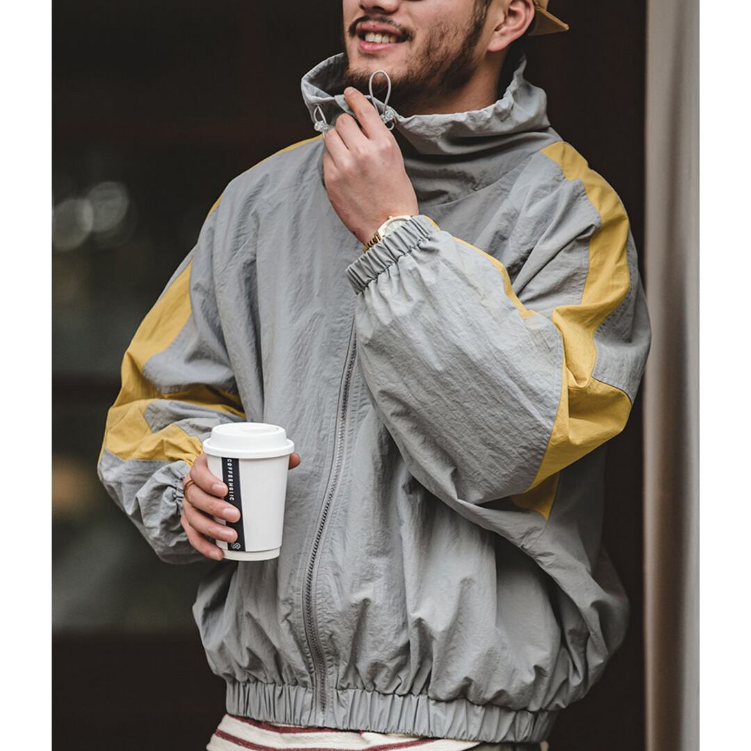 バイカラーデザインが目を引くフルジップアップジャケット。