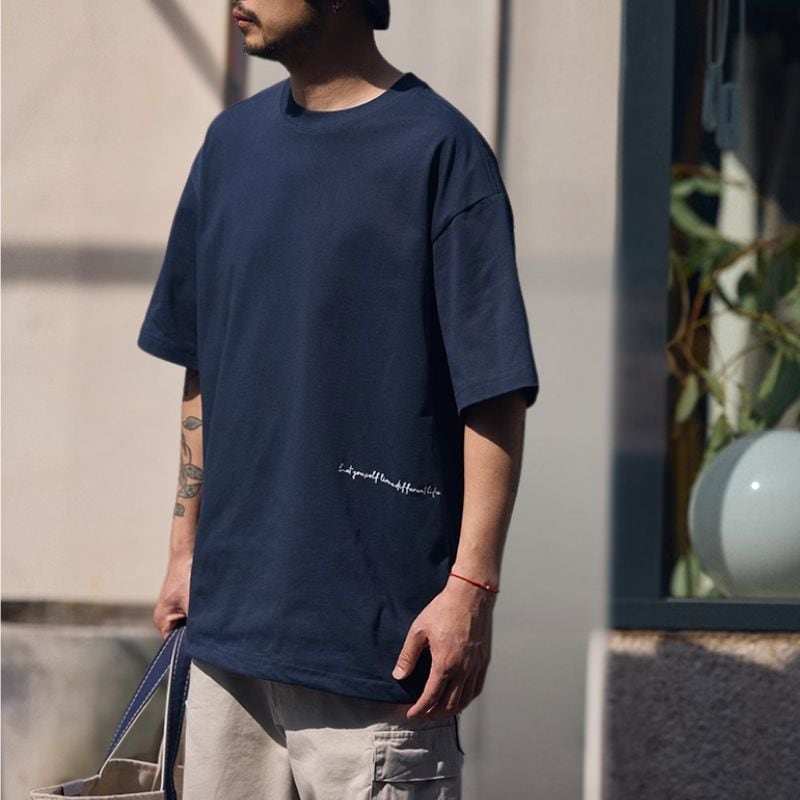 ゆったりとしたシルエットが魅力のクルーネックTシャツ。