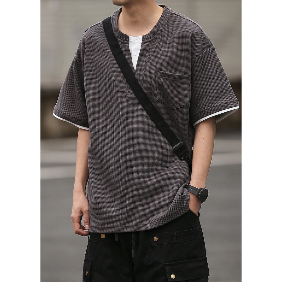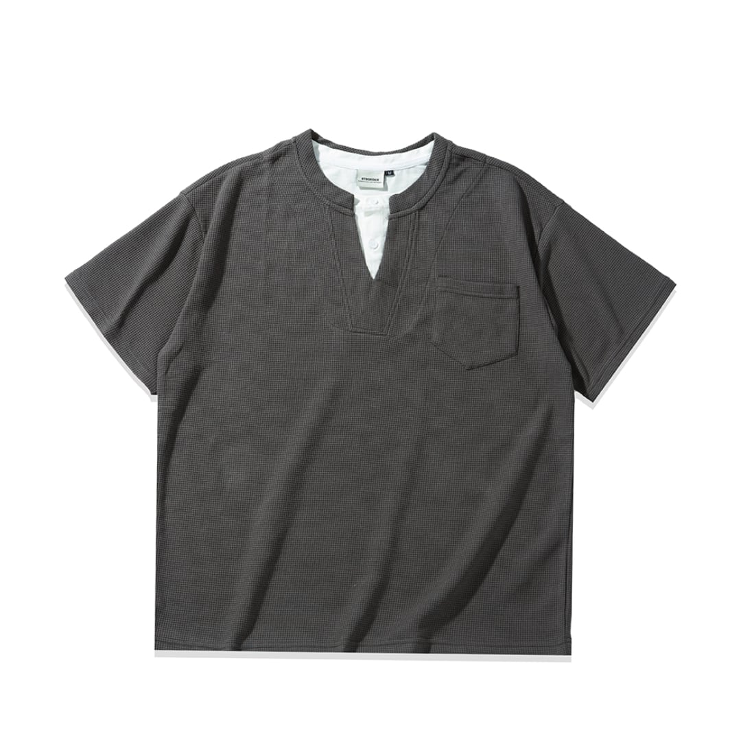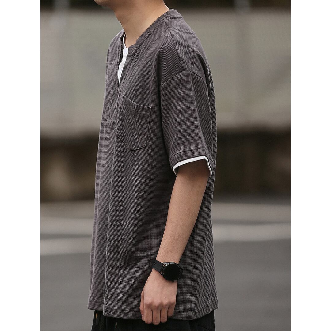シンプルなヘンリーネックデザインと、程よくカジュアルなワッフル生地が絶妙なバランスを生み出します。