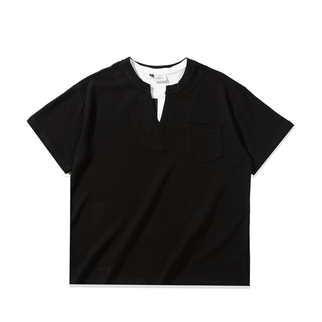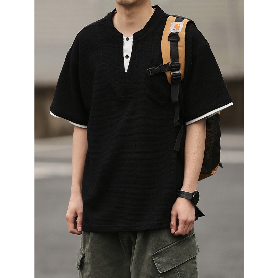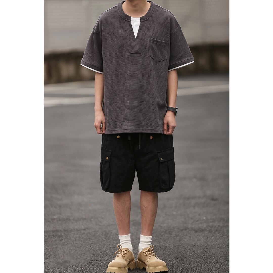 シンプルなヘンリーネックデザインと、程よくカジュアルなワッフル生地が絶妙なバランスを生み出します。
