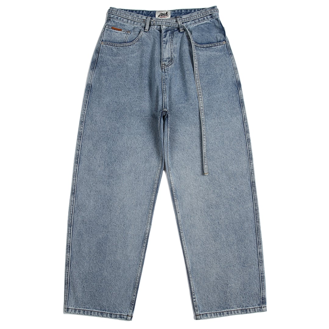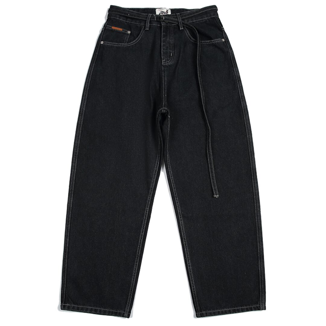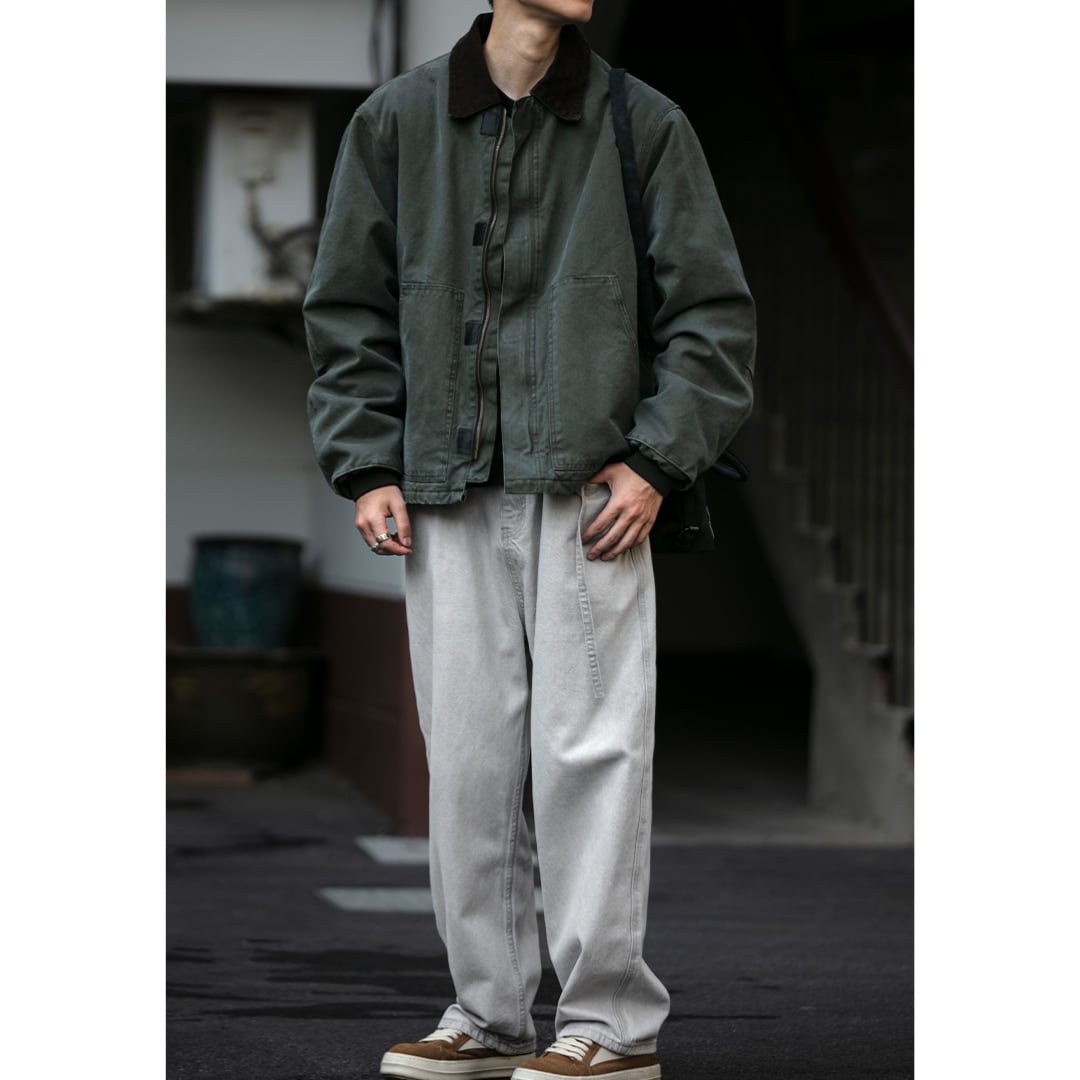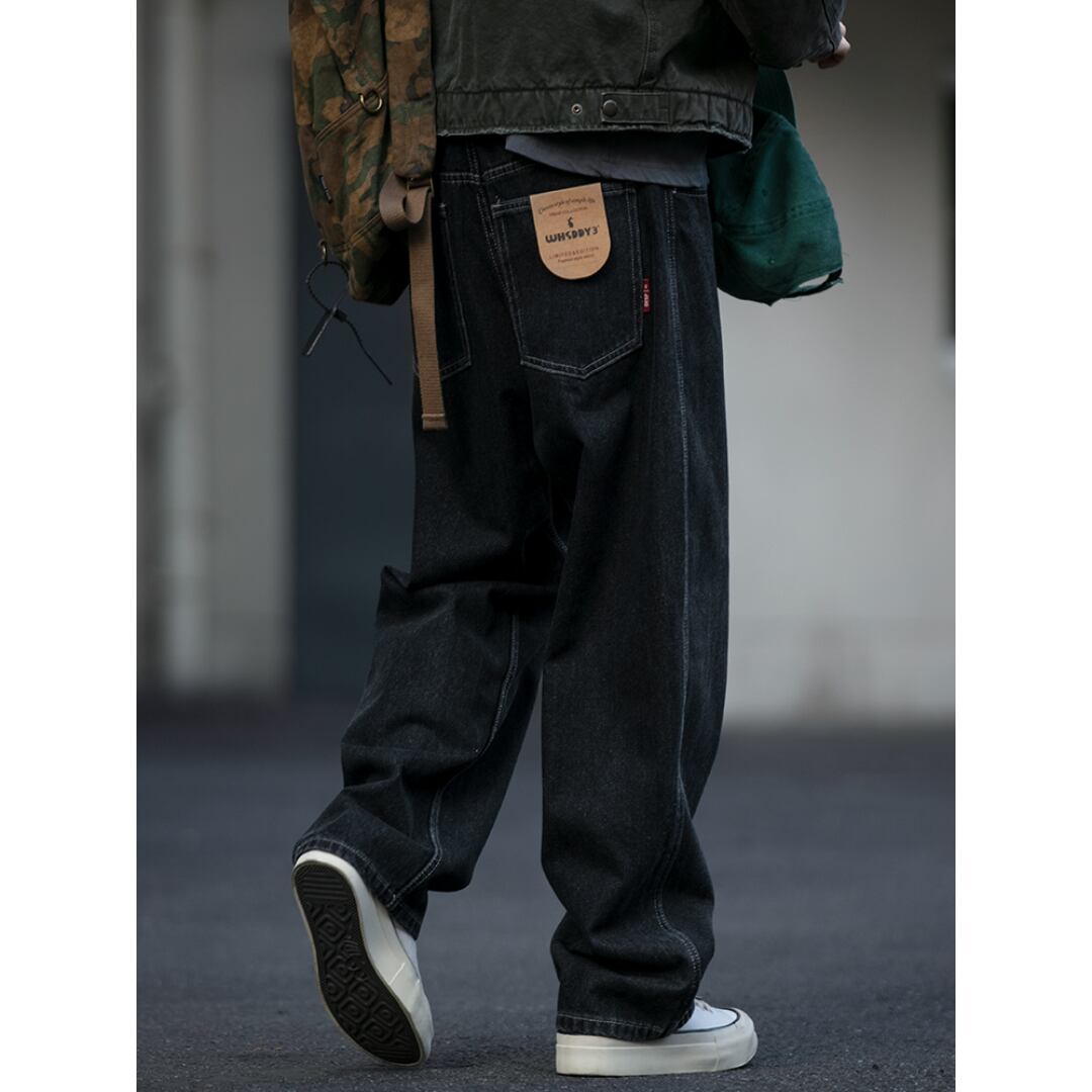 ルーズフィットでありながら、ワイドレッグシルエットが洗練された印象を与える。