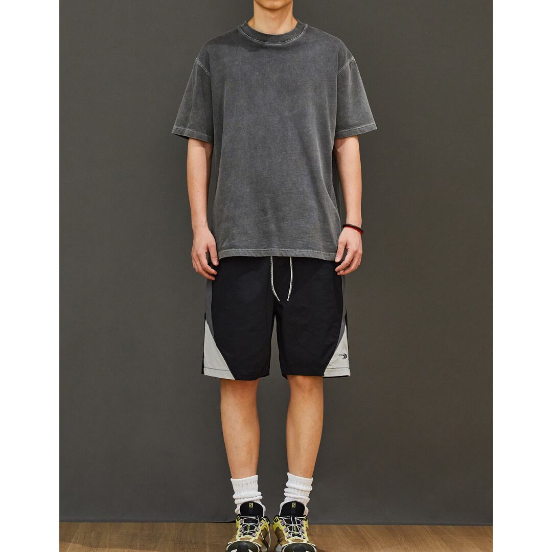 切り替えデザインが魅力的なハーフパンツは、スポーティなデザインとドローコードで快適なフィット感を両立。