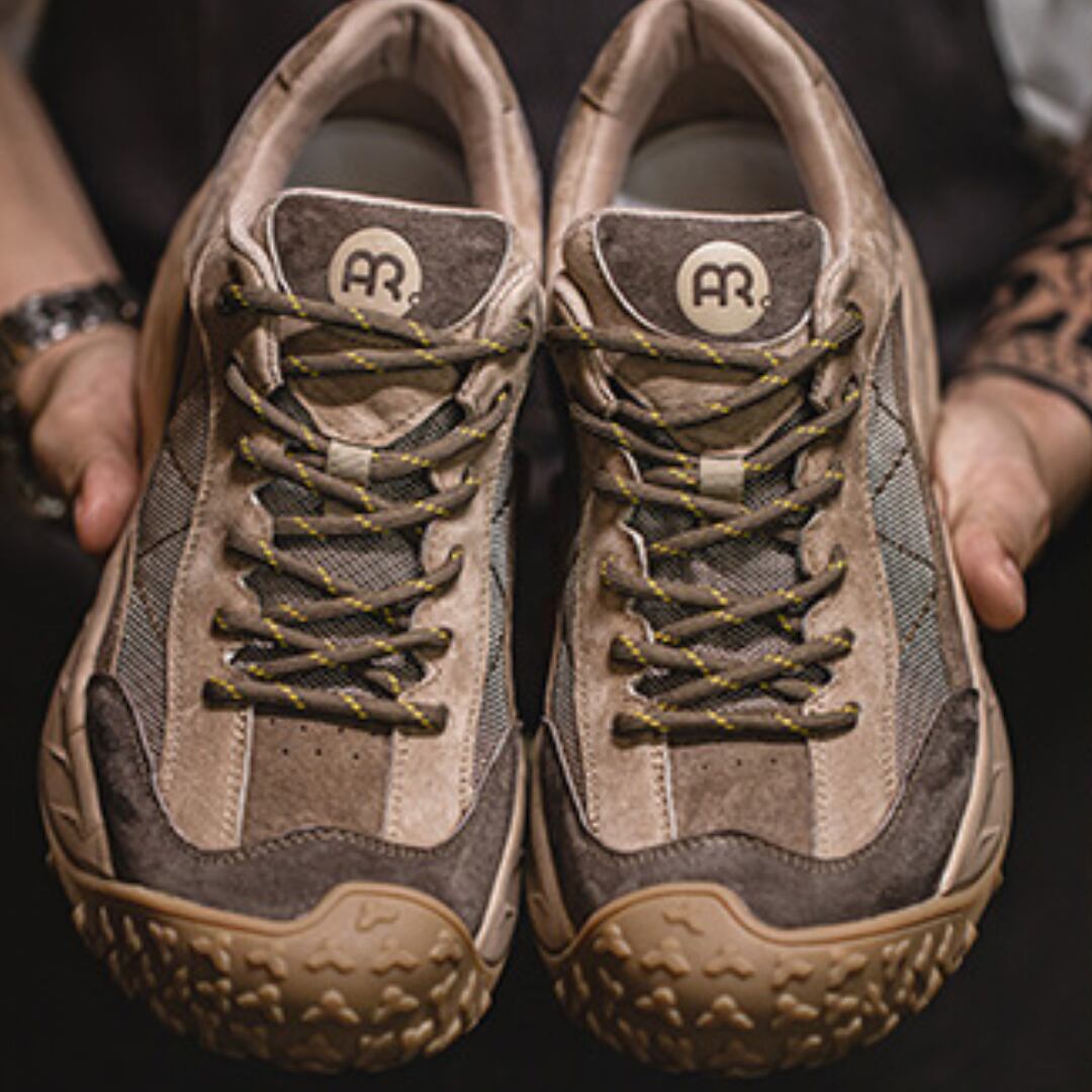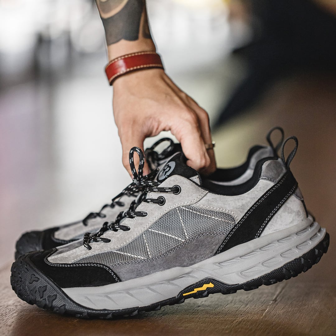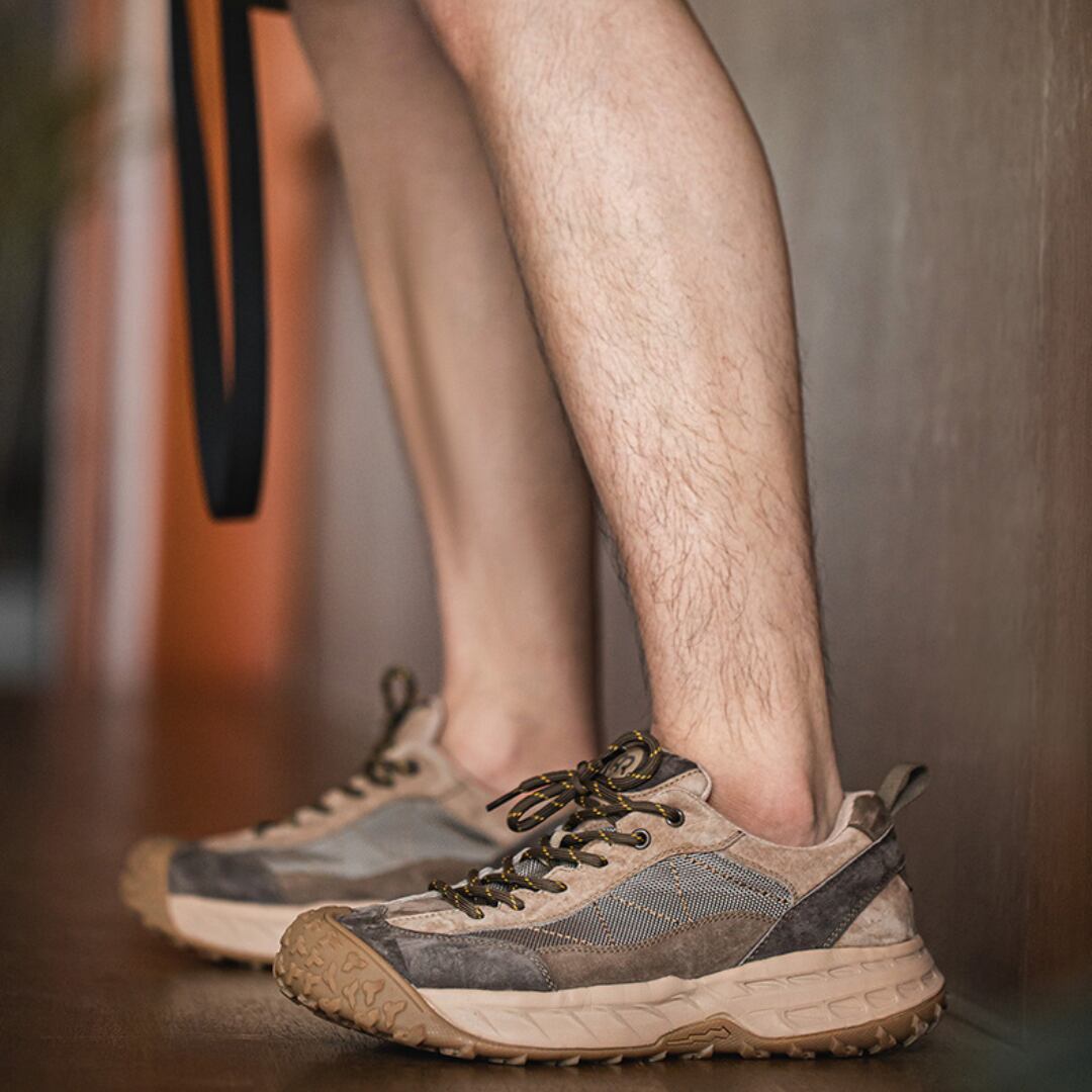 メッシュパネルと厚底ソールが特徴的なローカットスニーカーは、快適な履き心地と洗練されたデザインを両立した一足です。