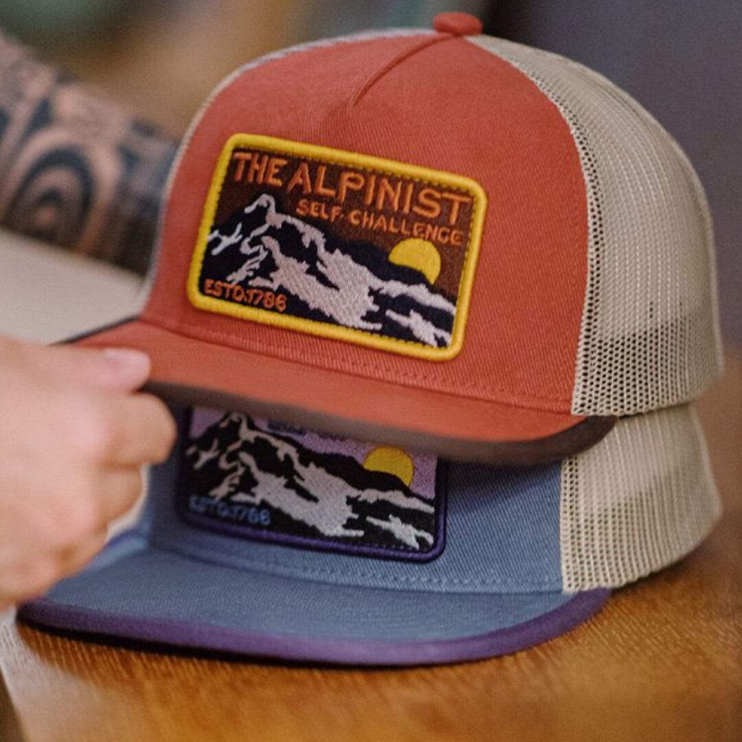 刺繍ワッペンが目を惹くメッシュキャップ。