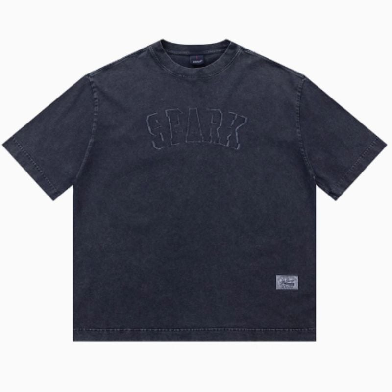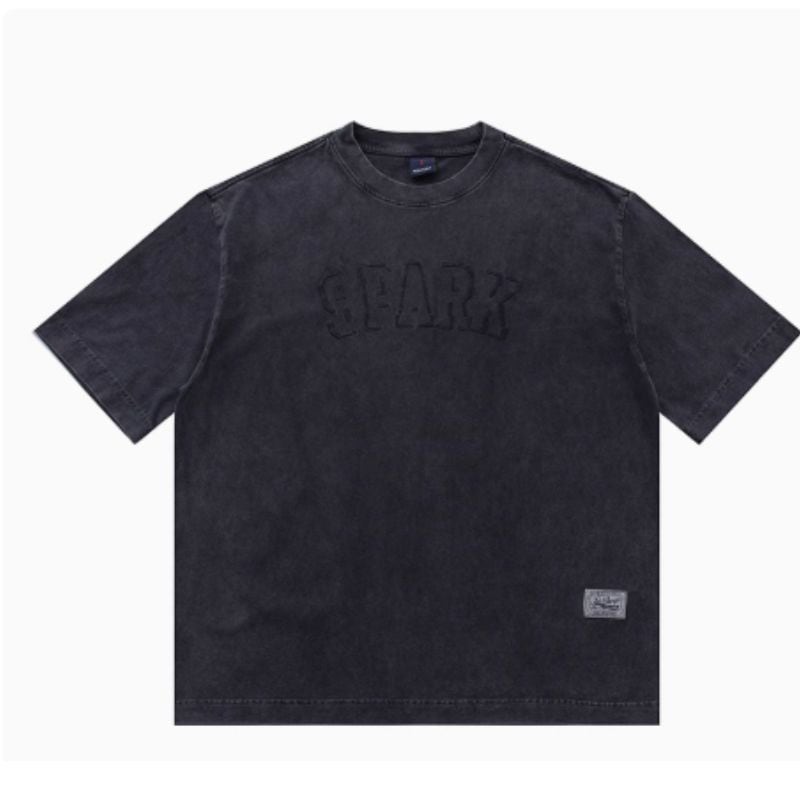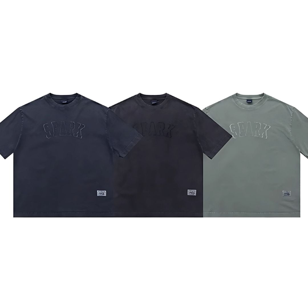アーチロゴが印象的なクルーネック半袖Tシャツ。