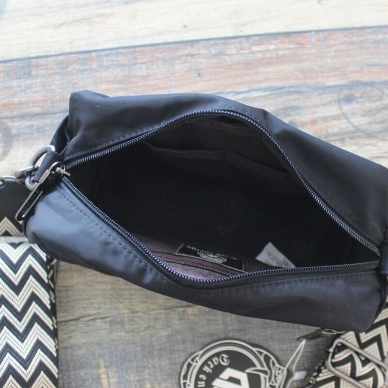 外側と内側にジッパーポケットが付いていて貴重品などを分けて収納できます。