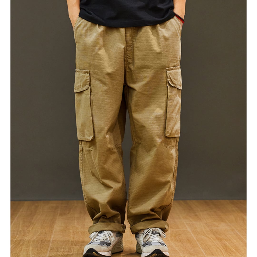 ゆったりとしたワイドレッグシルエットが魅力のカーゴパンツ。