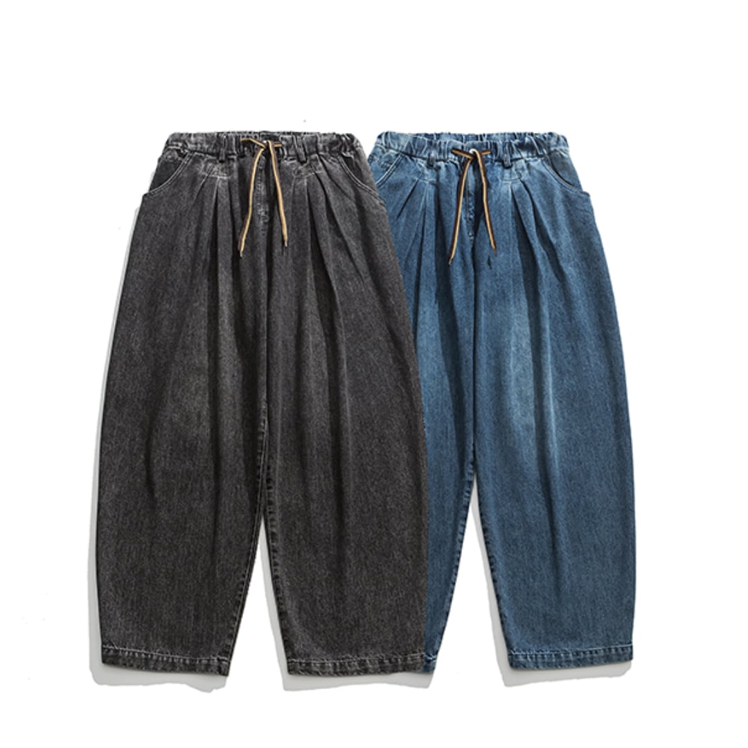 ゆったりとしたシルエットが魅力のワイドレッグバギーデニムパンツ。