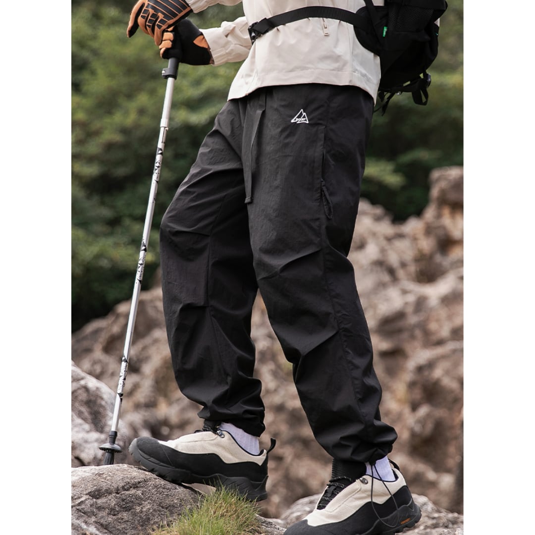 ウエストゴムとドローコードで快適な履き心地を実現したパンツ。