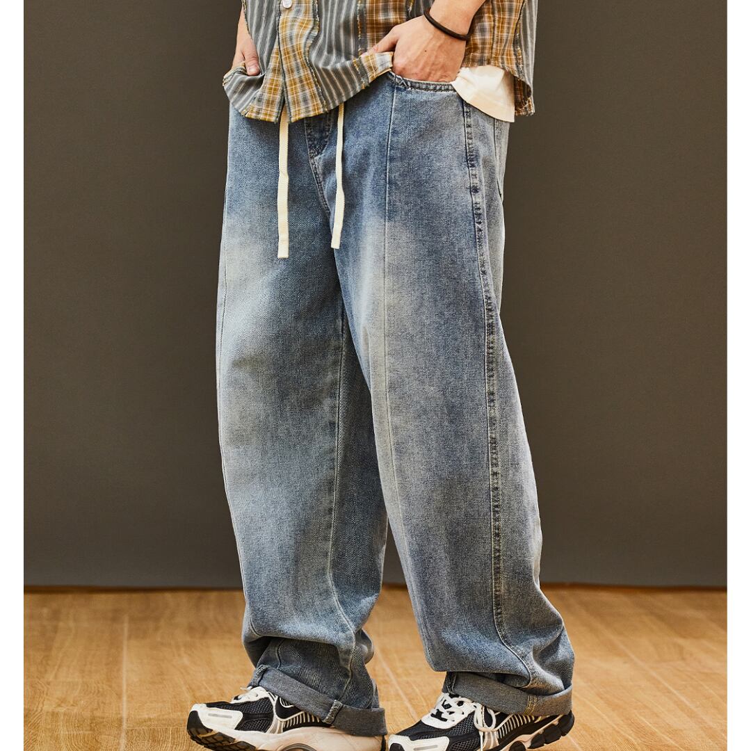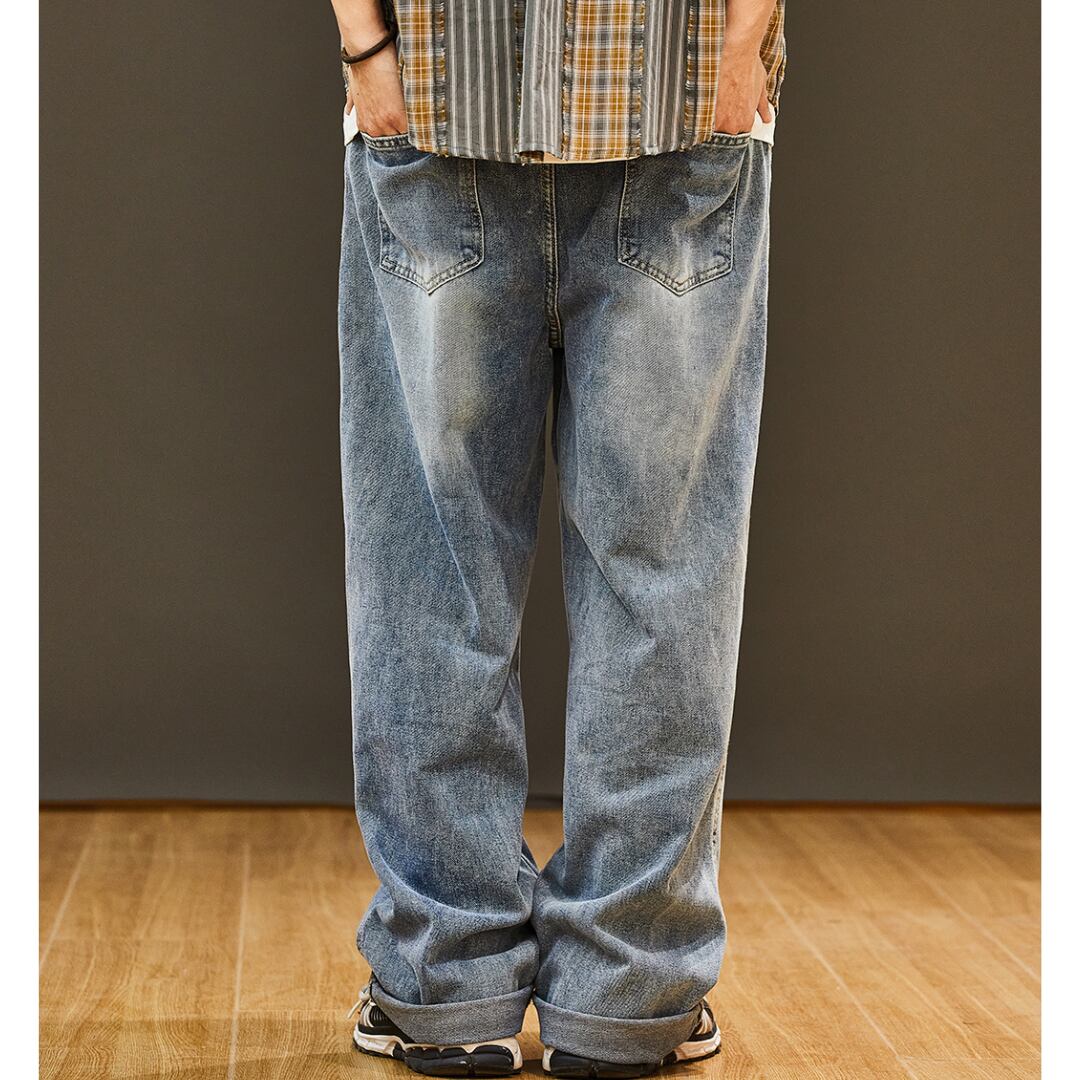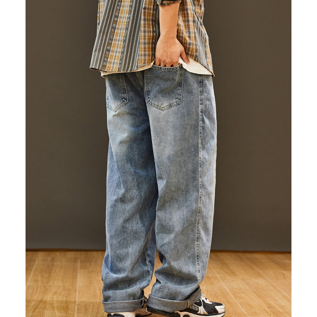 ワイドレッグバギーデニムパンツ 3XLまで対応 A18876