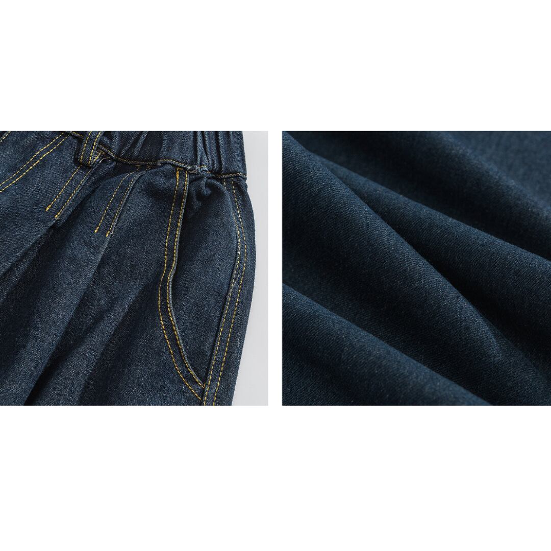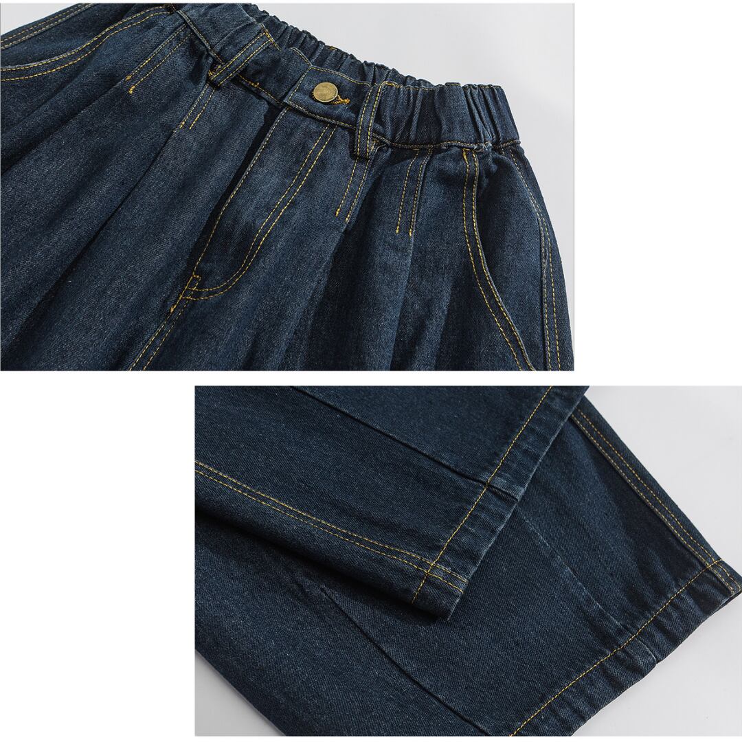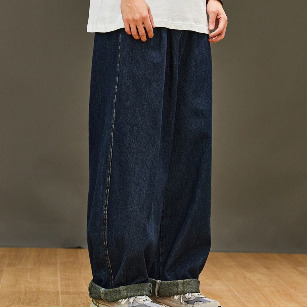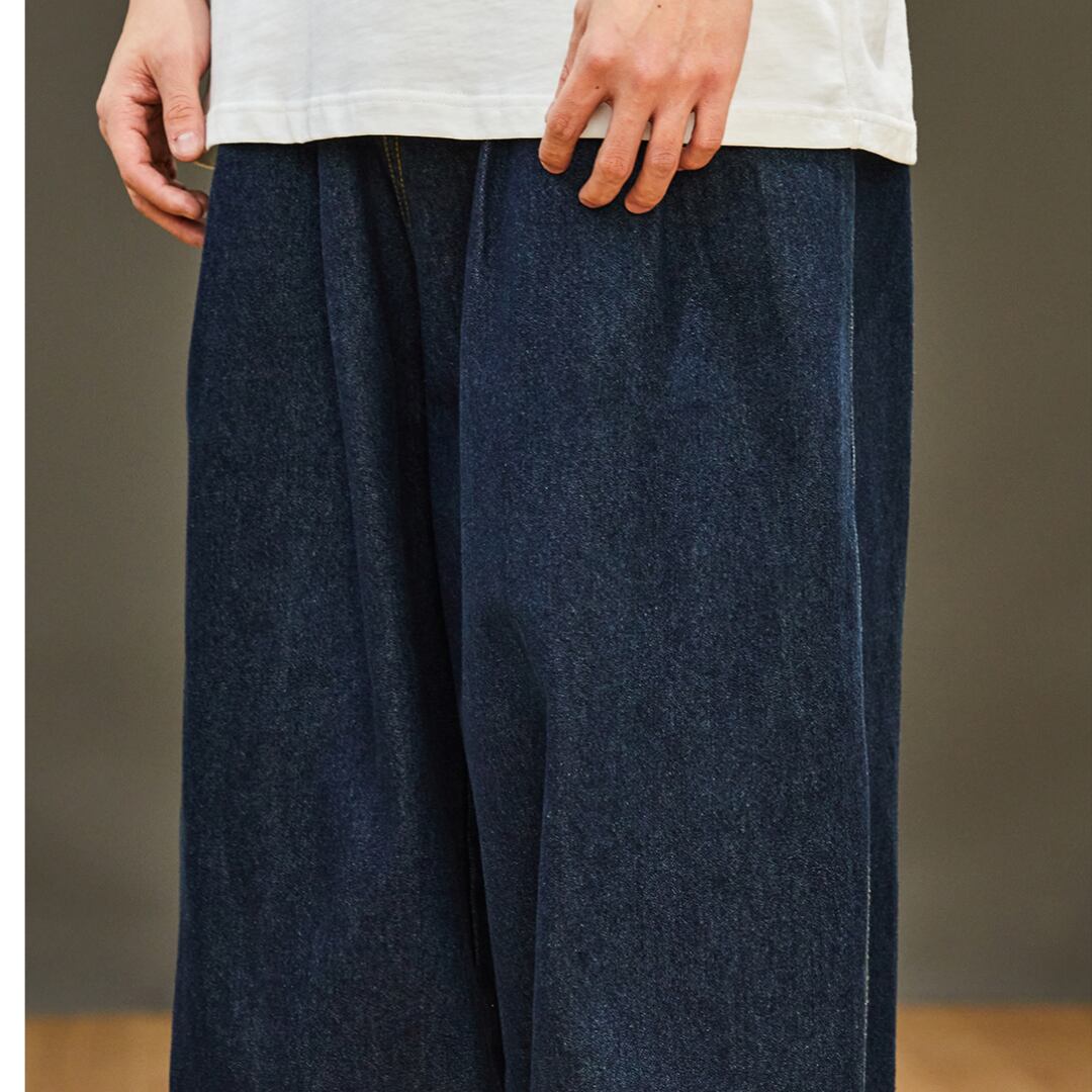 ゆったりとしたシルエットが魅力のフルレングスワイドレッグデニムパンツ。