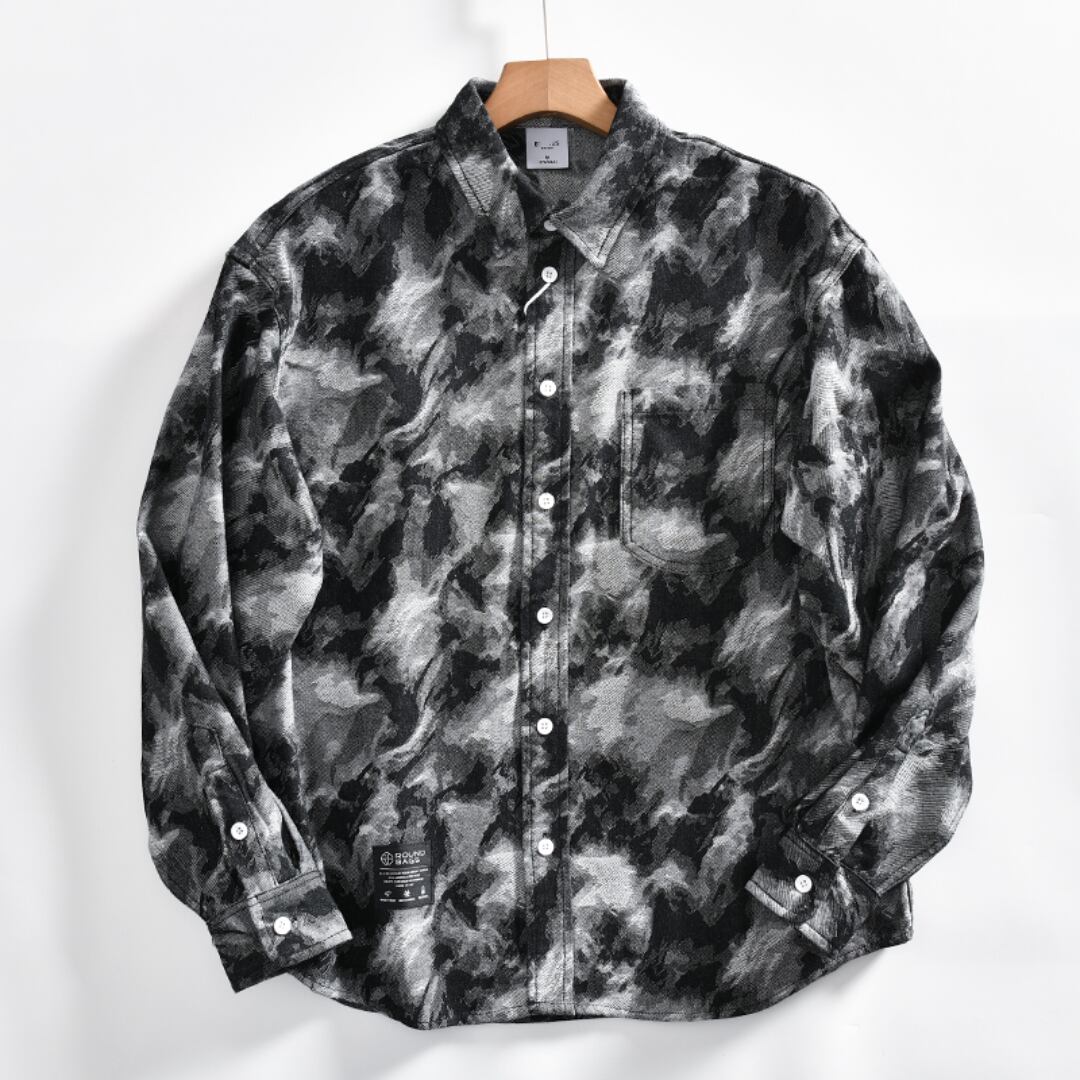 スタイリッシュな抽象柄が、カジュアルな装いをワンランクアップさせます。