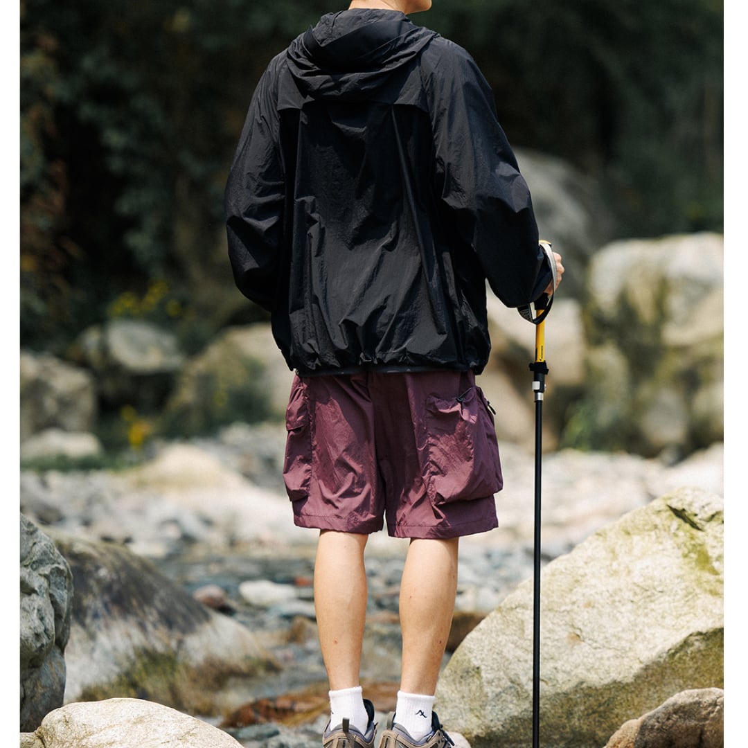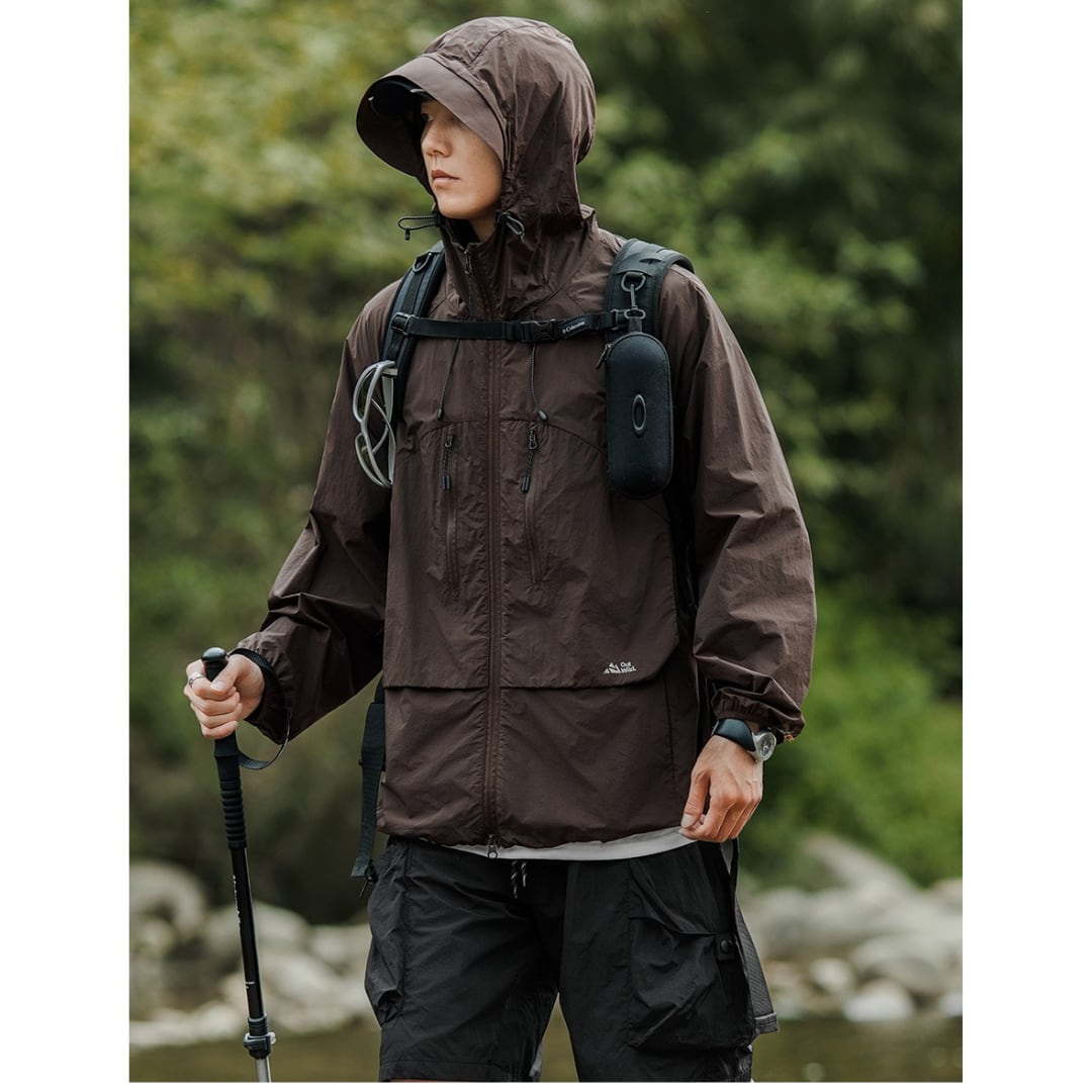 フード付きスタンドカラーロングスリーブジャケットは、アウトドアシーンに最適なアイテムです。