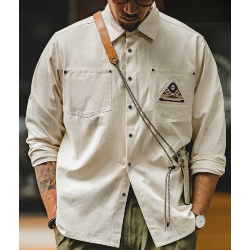胸ポケットに施されたトーテムの刺繍は、着こなしにアクセントを加え、個性を引き立てます。