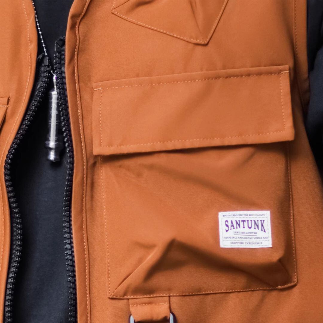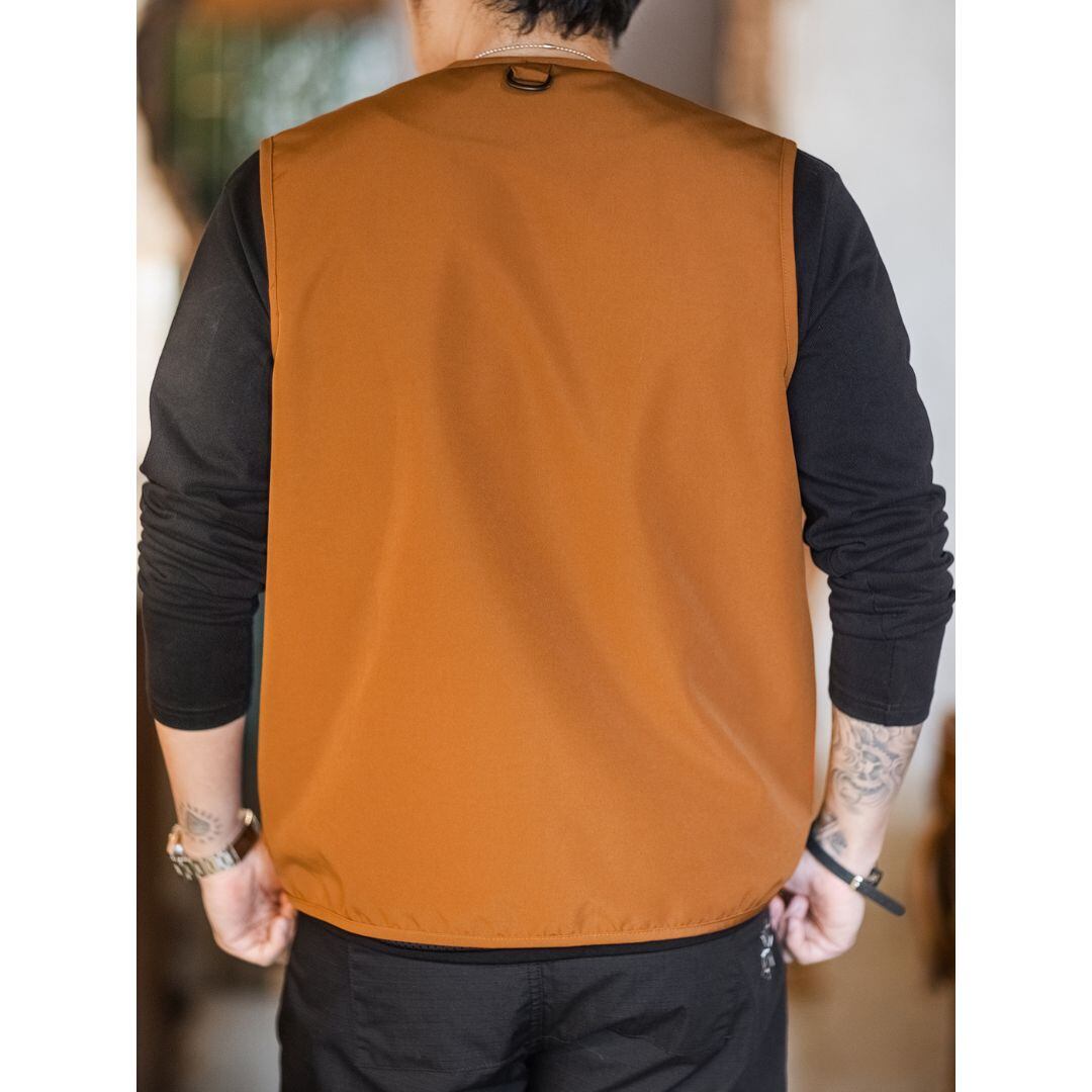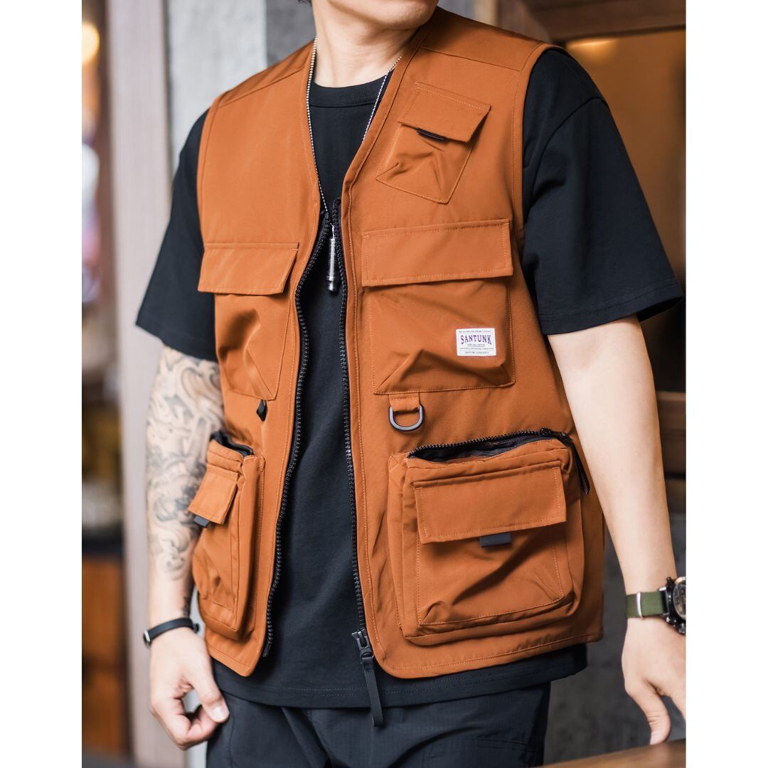 様々なシーンで活躍する、マルチポケットノーカラー ジップアップベスト。