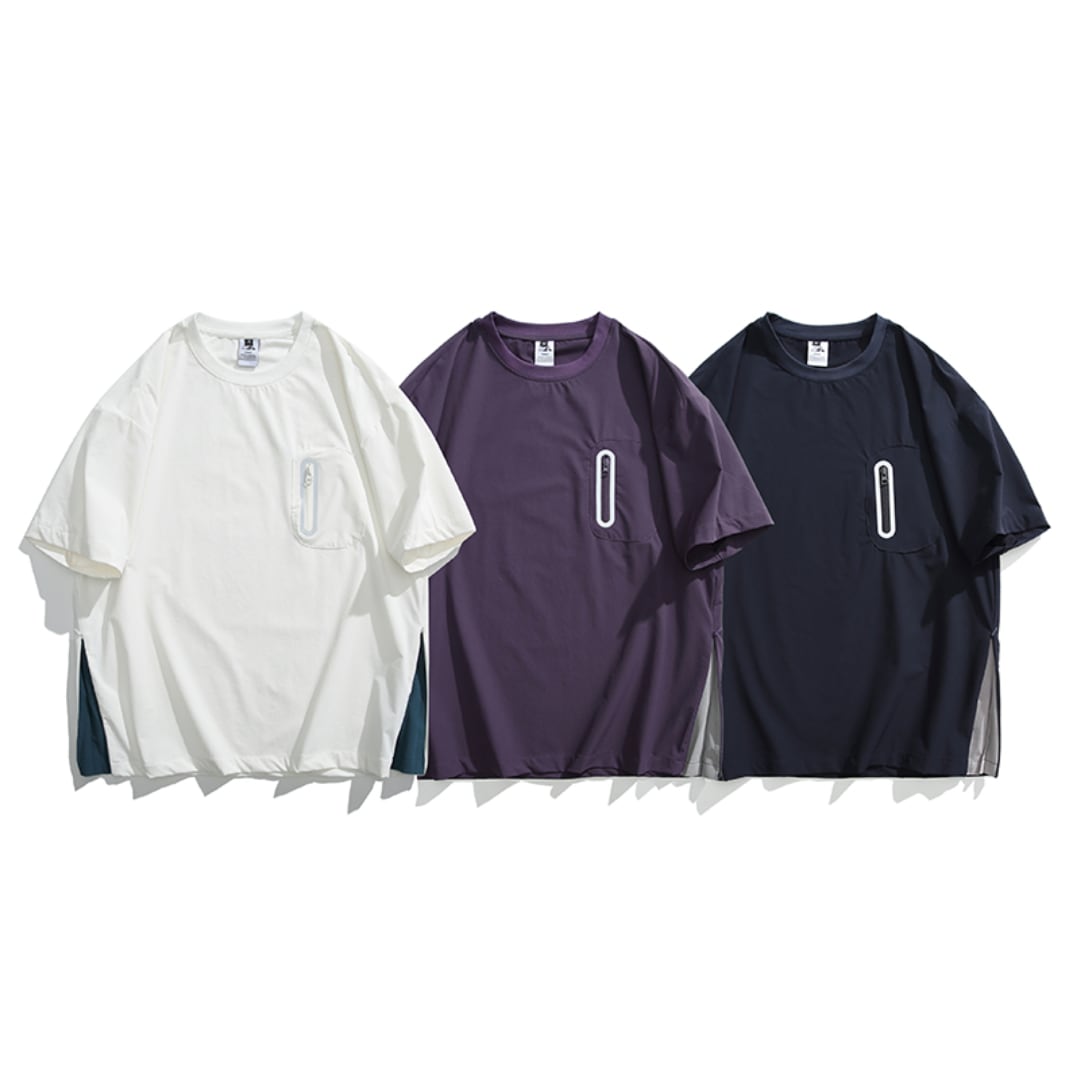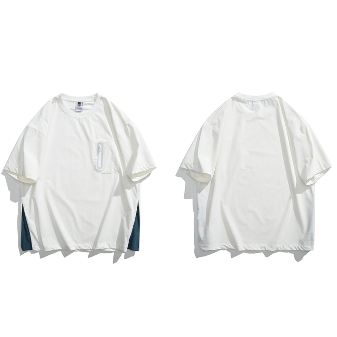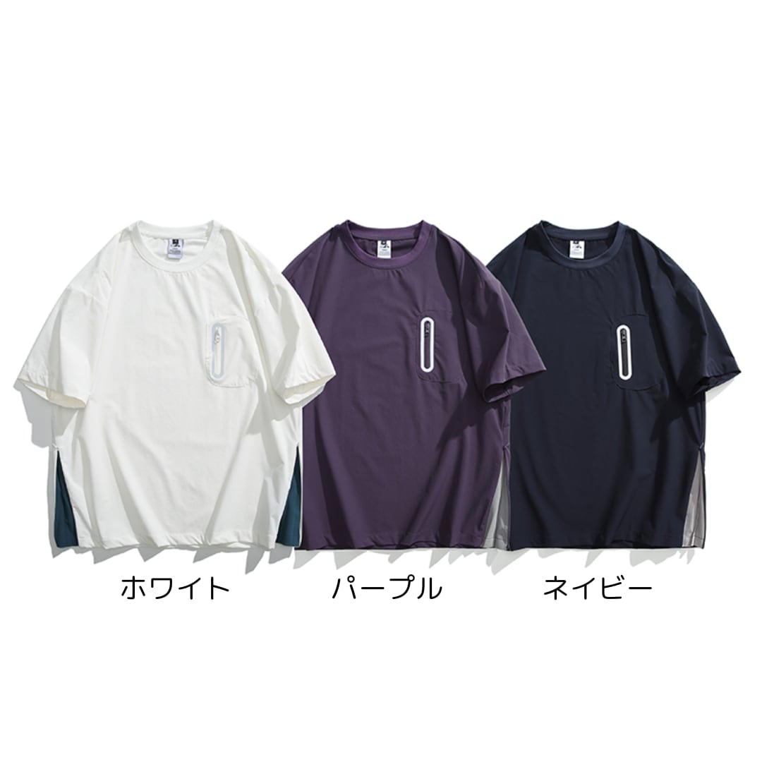 ファスナーのポケット付きサイドスリットデザインTシャツ A18929