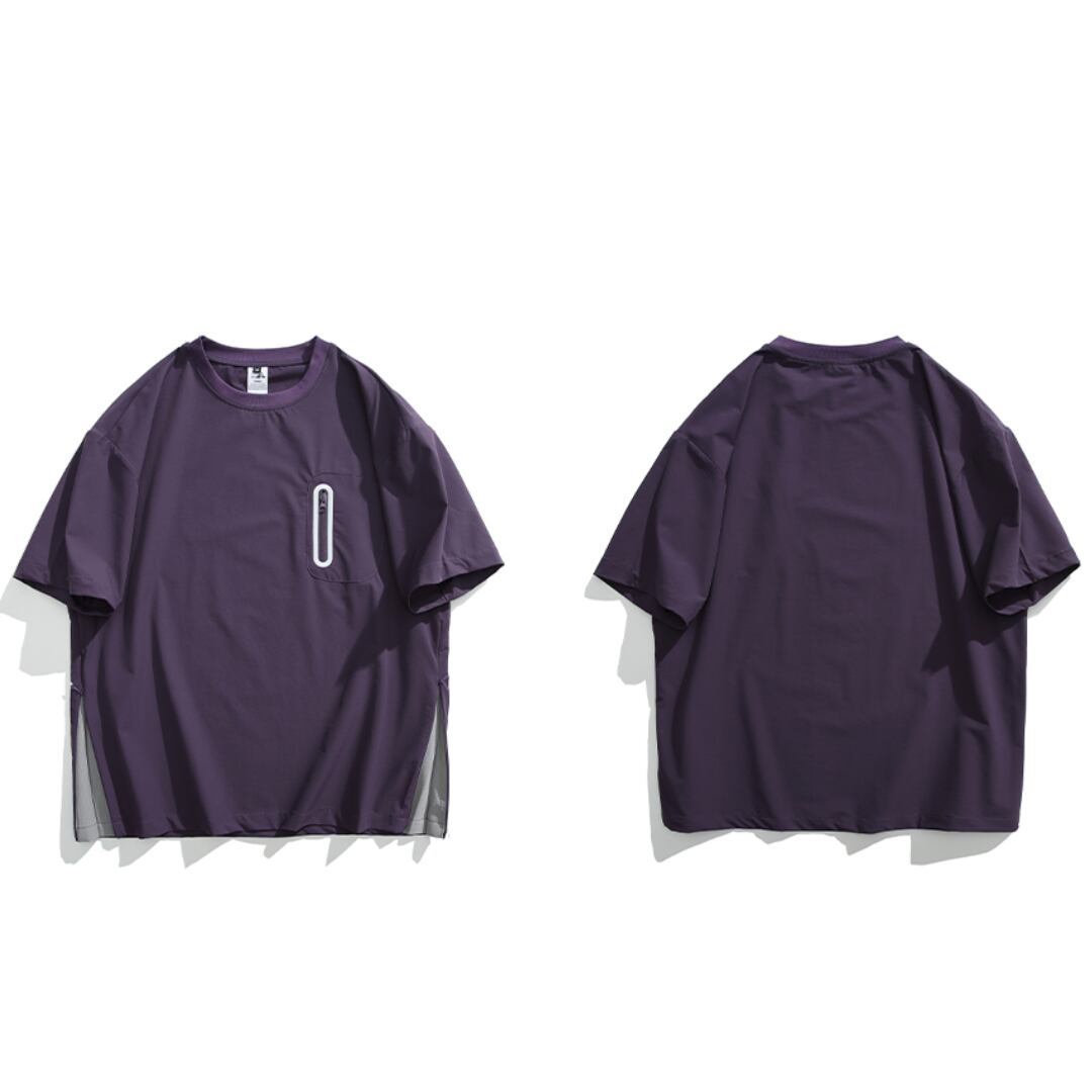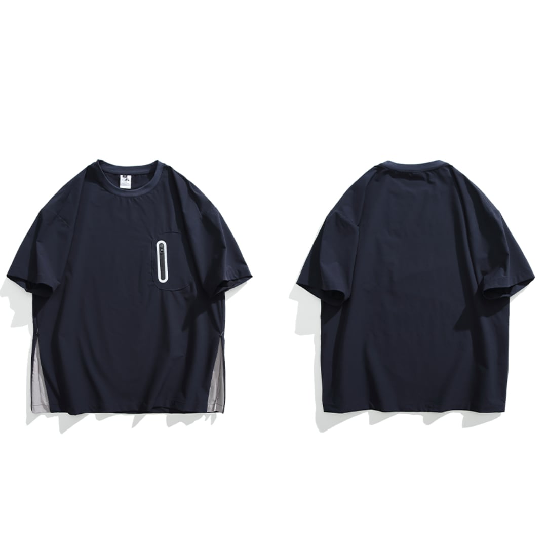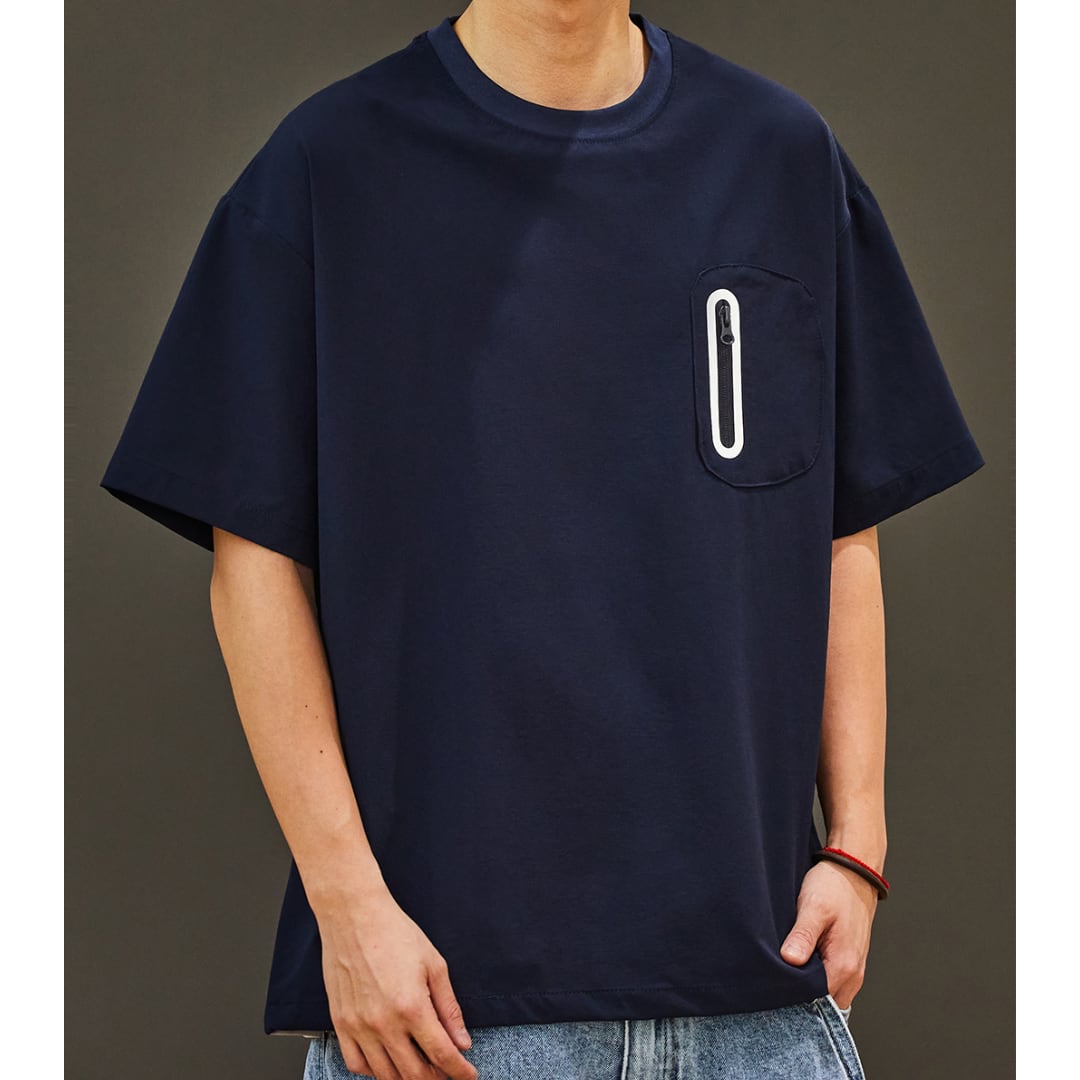 ファスナーのポケット付きサイドスリットデザインTシャツ A18929