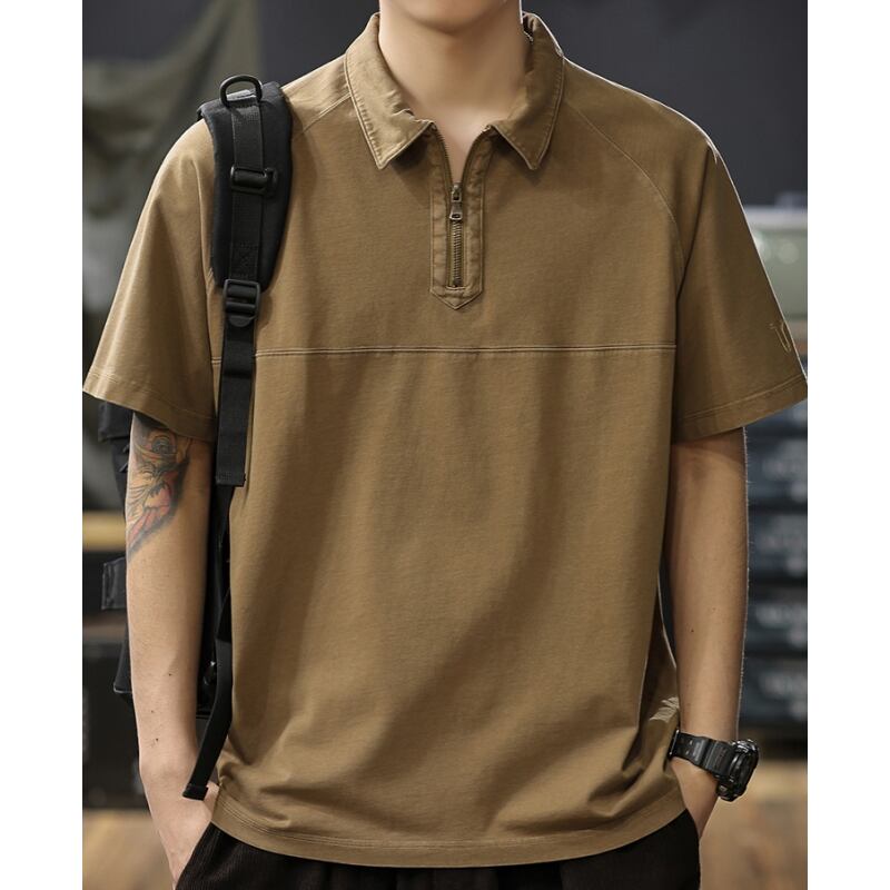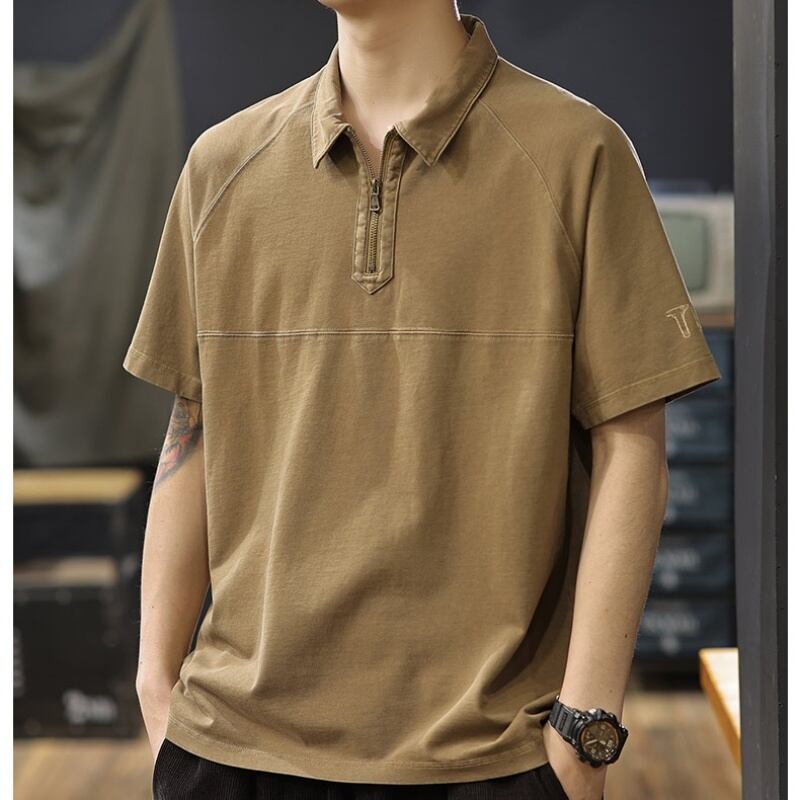 程よく色落ちしたウォッシュ加工が味を出すハーフジップのポロTシャツです。