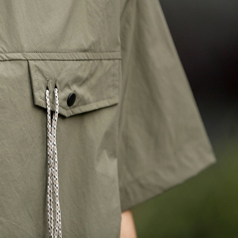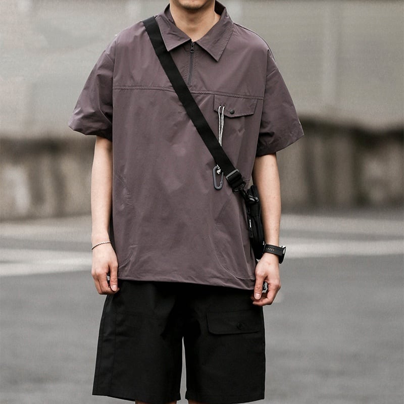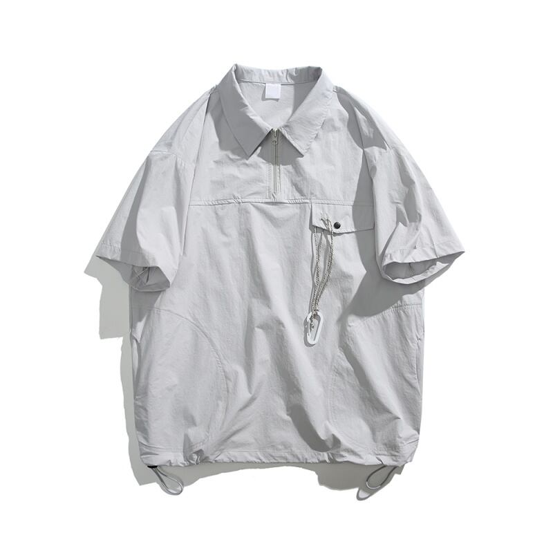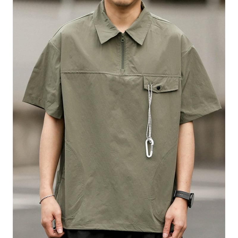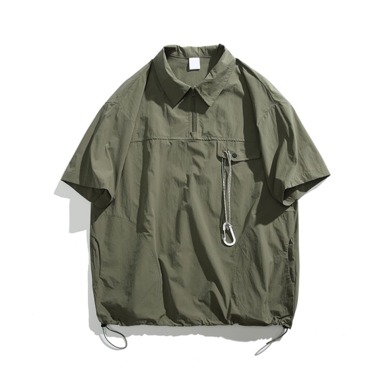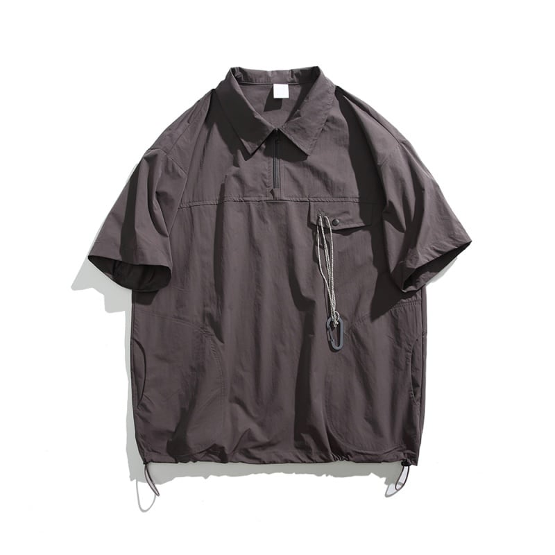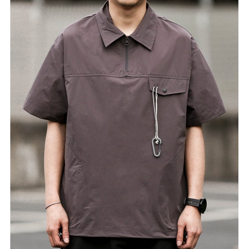ポロのキレイ目感と、Tシャツの気楽さを兼ね備えたハーフジップ半袖シャツです。