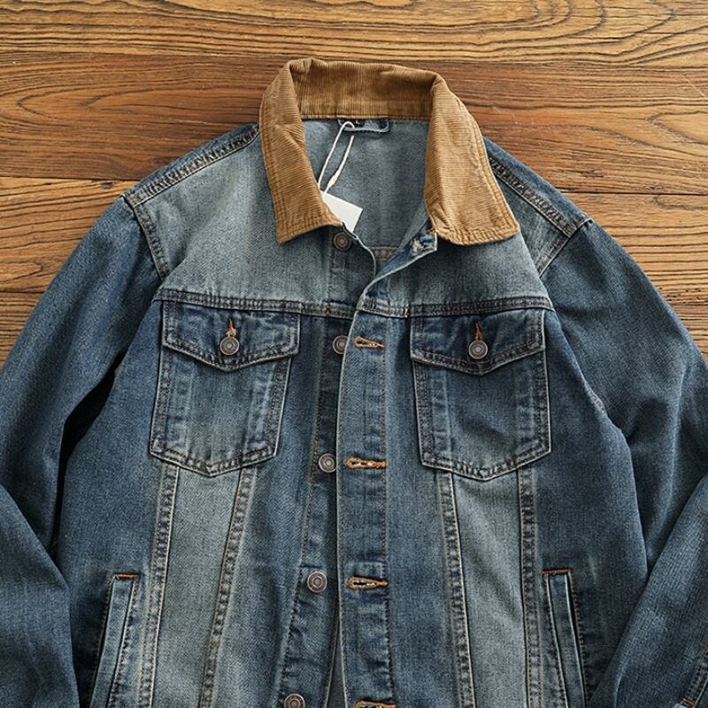 コーデュロイ襟がアクセントになったデニムジャケットです。
