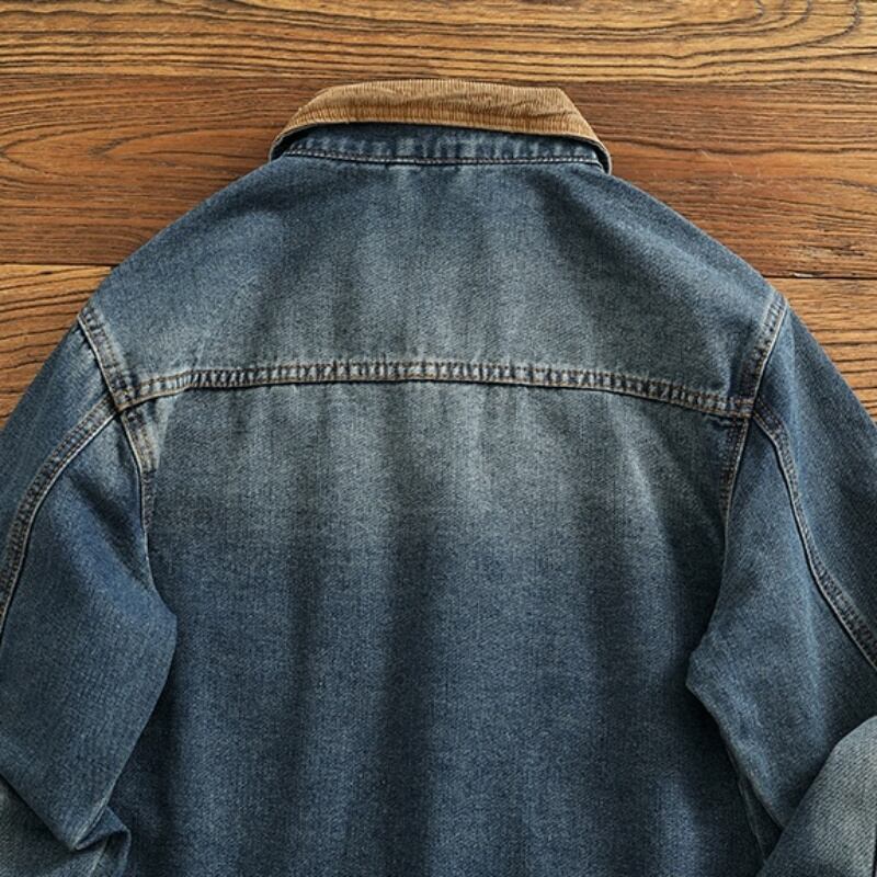 ウォッシュドデニムコーデュロイ襟カジュアルジャケット 5XLまで対応 A18914