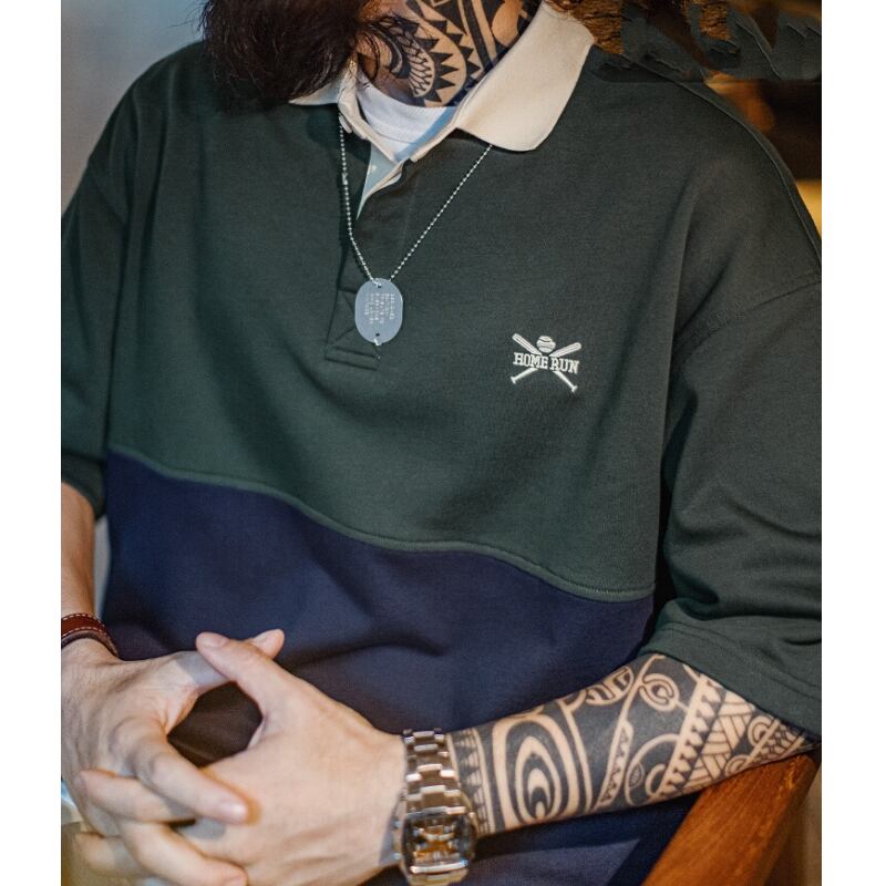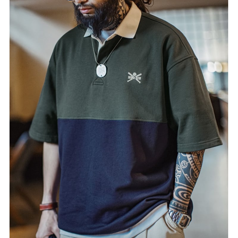 ステッチ2トーンカラー半袖ポロシャツ A18906